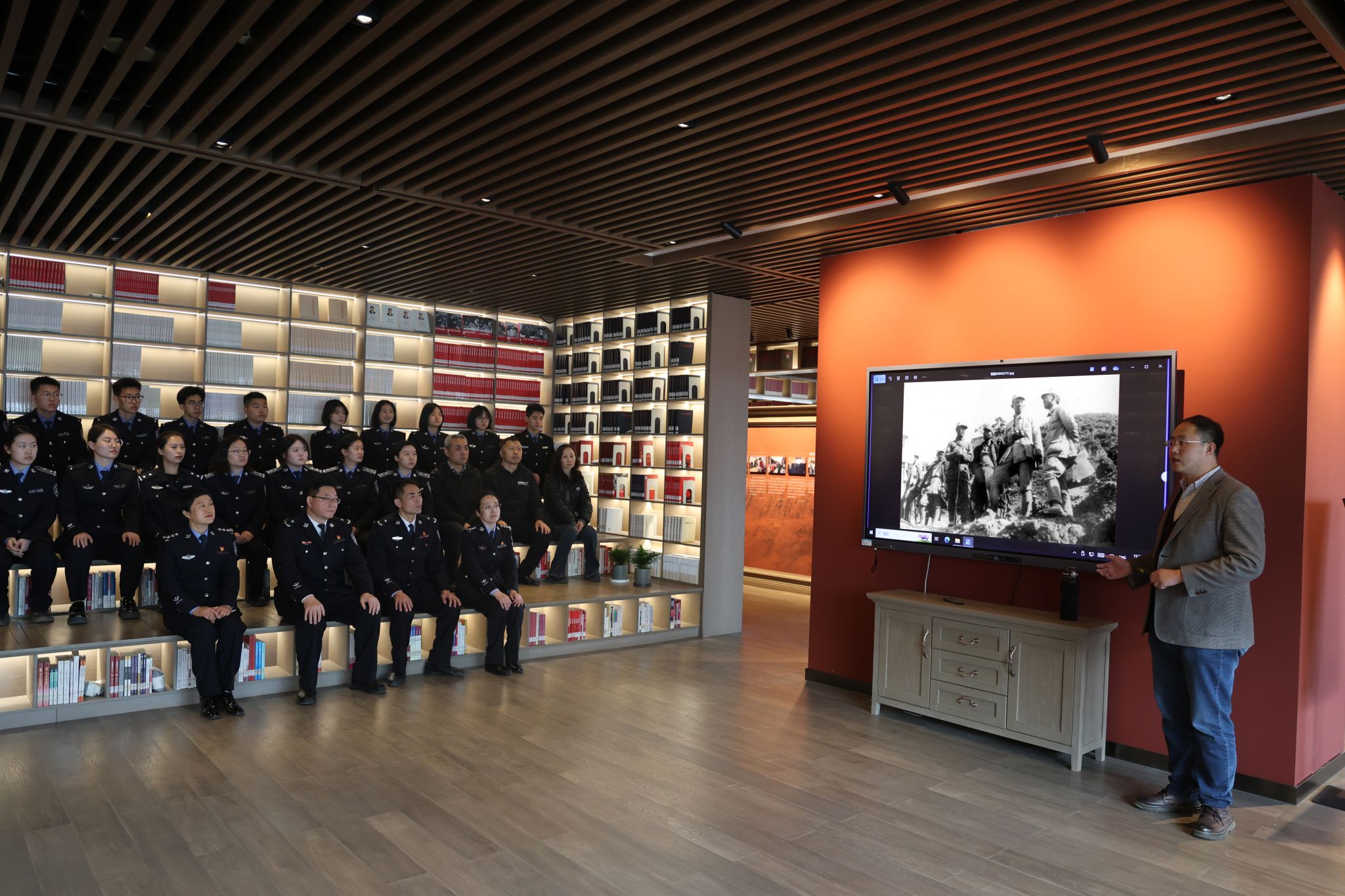 参观结束后,省图阅览部张䶮以关家垴战役为主题,为师生们带来一堂微党课。先辈们无畏艰险、不怕牺牲的精神感染了在场每一个人。