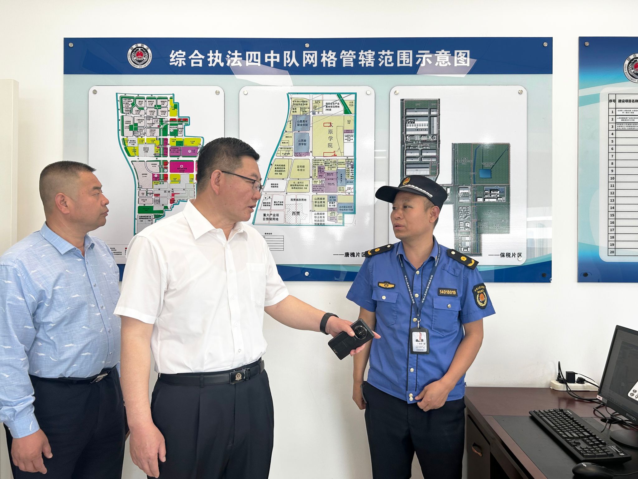 调研组一行实地走访山西转型综改示范区综合执法局(队)指挥中心与执法四中队,深入了解区综合执法局(队)数字执法平台建设、功能、成效等方面的情况,重点调研基层执法规范化建设、队伍管理模式及文明执法机制。