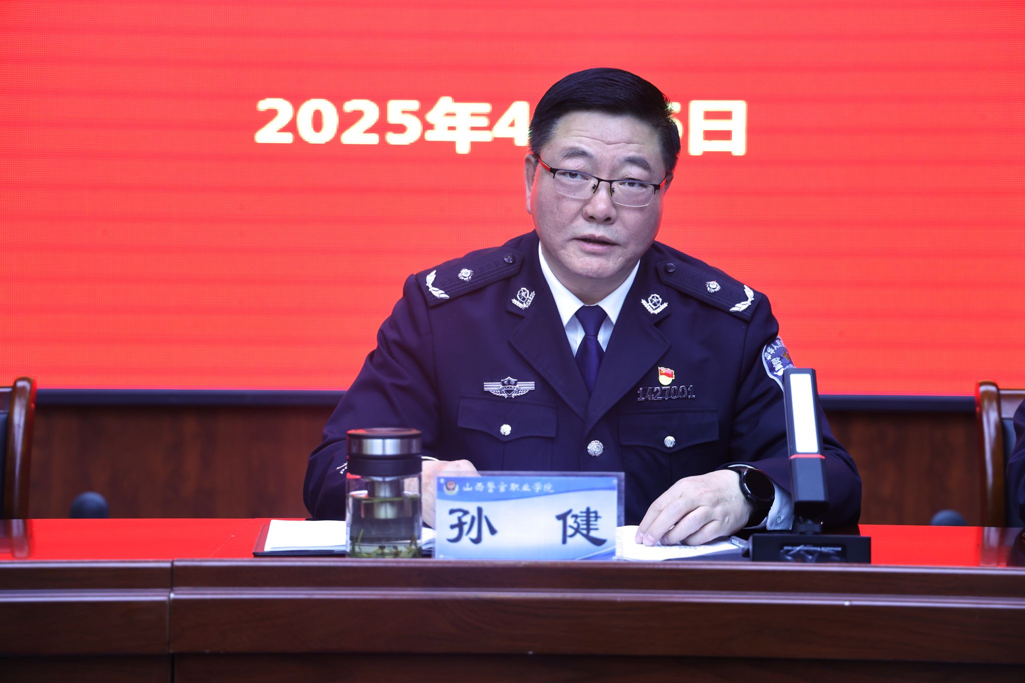 院党委书记孙健出席会议并讲话。他强调,要坚持以习近平新时代中国特色社会主义思想为指导,深入学习贯彻习近平总书记关于党的建设的重要思想、关于党的自我革命的重要思想,坚决扛牢全面从严管党治警政治责任,守正创新、狠抓落实,为把学院建成特色鲜明、人民满意的高水平一流司法警官职业学院提供坚强保证。
