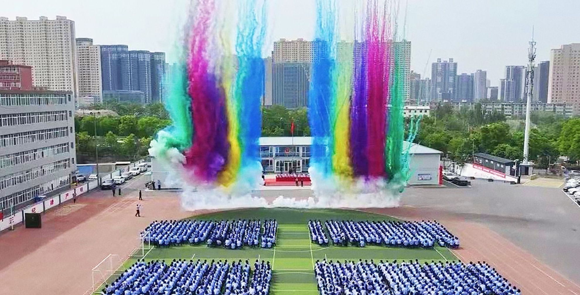 在全体师生的期待中,孙健宣布校园文化艺术节正式开幕。礼炮轰鸣,彩烟升腾,现场成为一片欢乐的海洋。