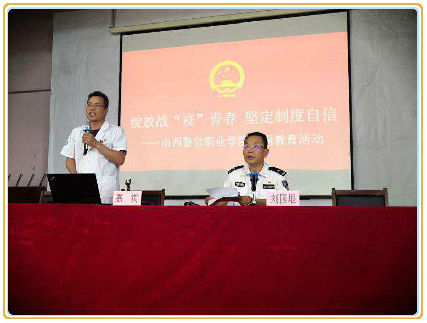讲述抗“疫”故事,传递奋进力量。按照“绽放战疫青春 坚定制度自信”主题教育活动安排,6月9日下午,警院团委举行首批援鄂医疗队杨立明主任医师抗“疫”事迹报告会。报告会主会场设在礼堂,根据疫情防控要求,201名学生现场聆听,其余学生通过网络直播收听收看。报告会由学院党委副书记、院长刘国垠主持。