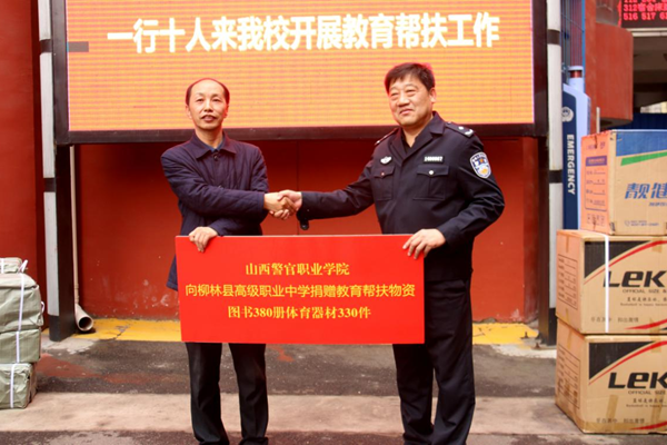 交流活动之后,在教学楼前,beat365唯一官网党委书记李志钢和柳林职中党支部书记李福贵分别代表两校举行了图书和体育器材捐赠受赠仪式,双方校领导集体合影留念,考察校园和学生活动情况。
