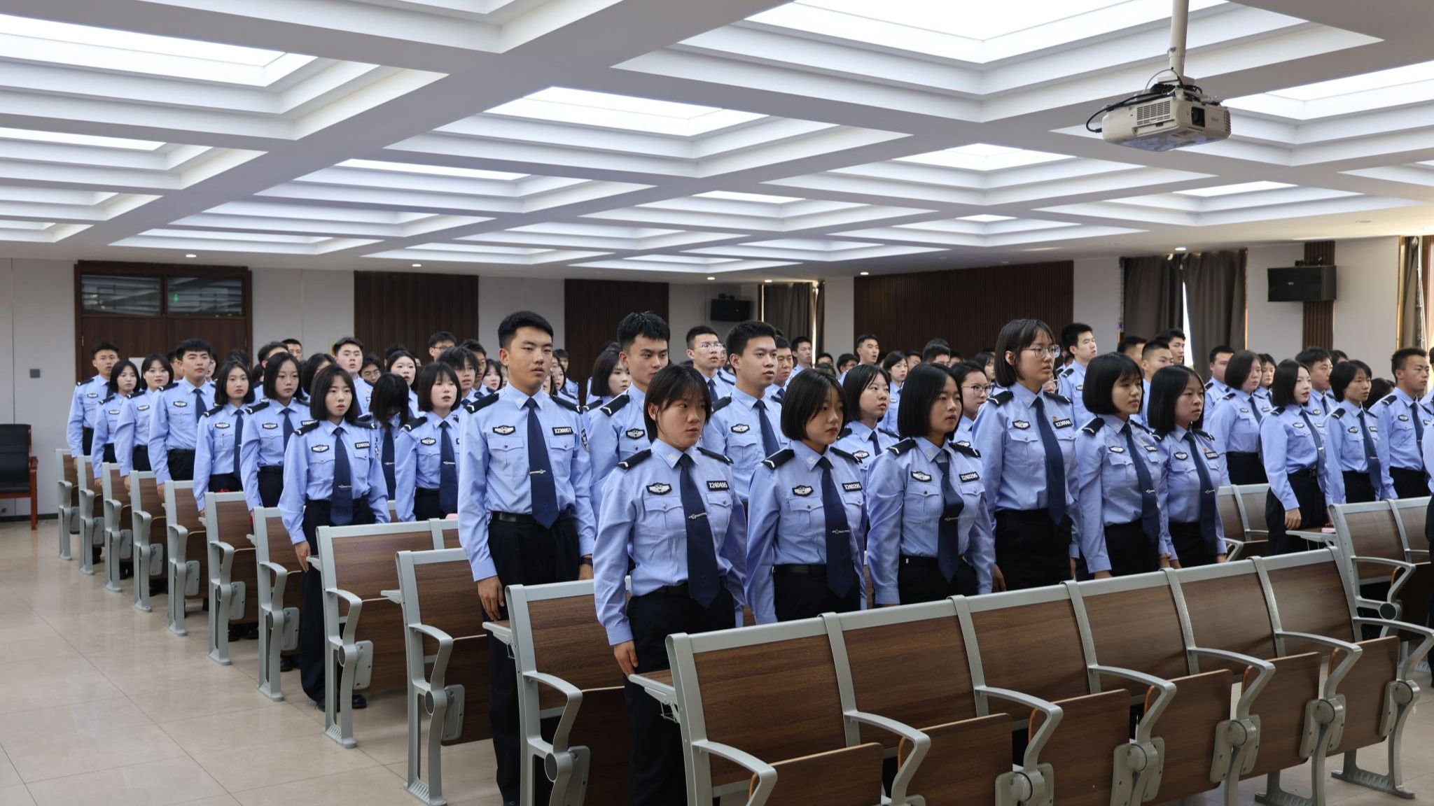 表彰大会结束后举行“青春向党 强警报国”文艺汇演。学生们通过朗诵、合唱等文艺形式,尽情展现警院院青年昂扬向上、直面挑战的精神风貌。