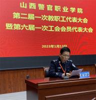 党委副书记、院长冀建峰代表学院作了题为《立足新时代 抢抓机遇向前进》的学院工作报告。报告总结了自第一届“双代会”以来学院各项工作开展情况。近年来学院全面贯彻党的教育方针,坚持立德树人的根本任务,不断深化“警”字立校内涵建设,综合改革持续稳步推进,人才队伍建设不断强化,综合办学能力逐步提高,迁建工作卓有成效,学院各项工作迈上新的台阶。报告明确了今后重点任务和工作举措,要推进学院综合改革取得新进展、立德树人取得新成效、专业建设取得新突破、队伍建设迈出新步伐、服务行业发展达到新水平,为建成更高水平、更具特色的高职学院而努力奋斗。