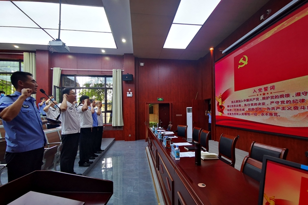 活动在雄壮的国歌声中拉开序幕。学院党委副书记张永前带领全体参会人员面向党旗,庄严宣誓。誓词字字千钧,是一种激励,是一种鞭策,更是一种对信仰的强化。
