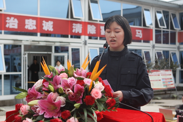 警体教学部主任宣读了《军事课管理制度》。学生处处长、军训教官代表、新生代表分别作了发言。
