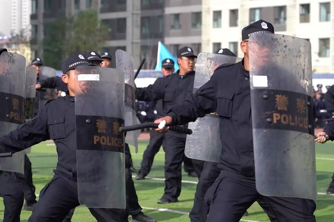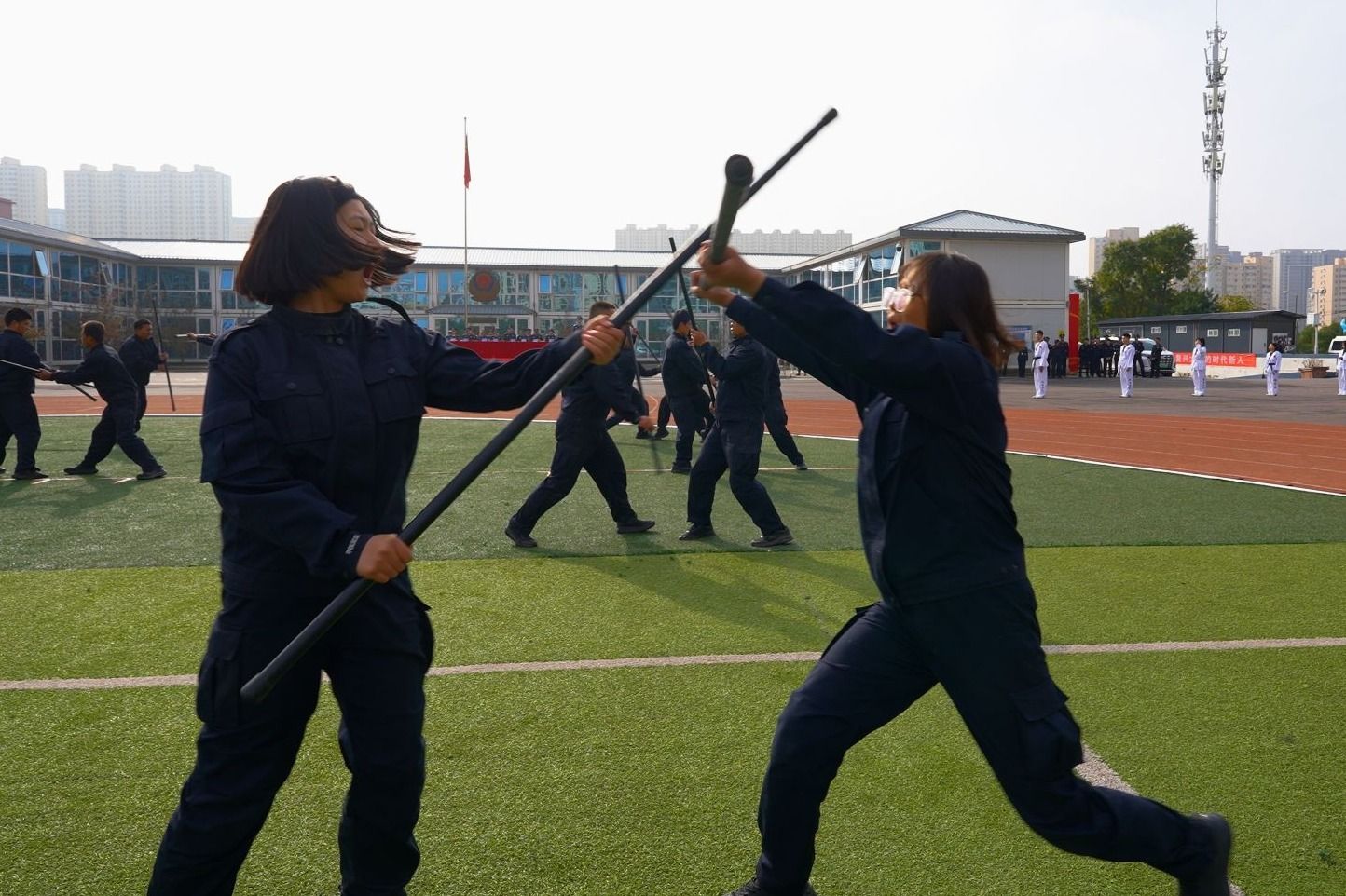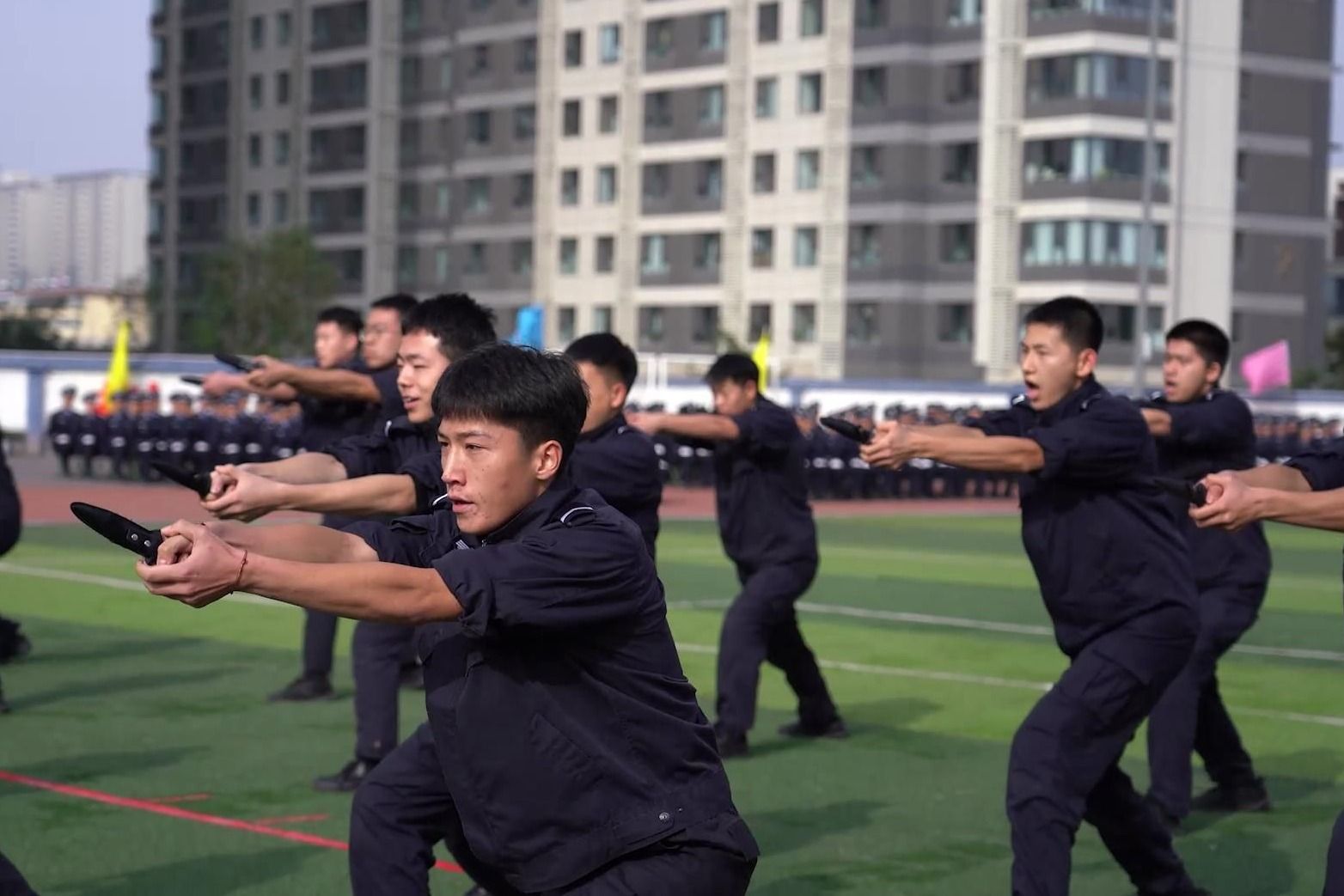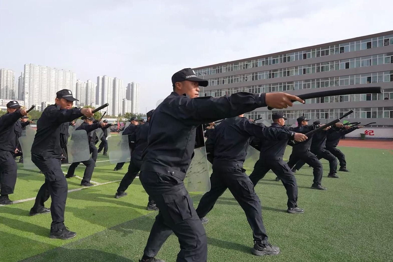 警棍盾牌方队,步步有力,锐气所至坚不能摧。
