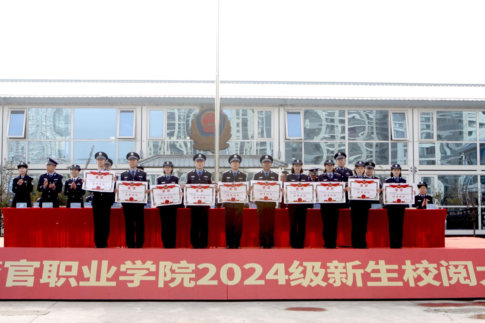 院党委委员、纪委书记霍玉玲宣读《关于表彰2024级新生<军事课>教育教学优秀班级、优秀教官、优秀学员、队列标兵、内务标兵、理论学习标兵的决定》。