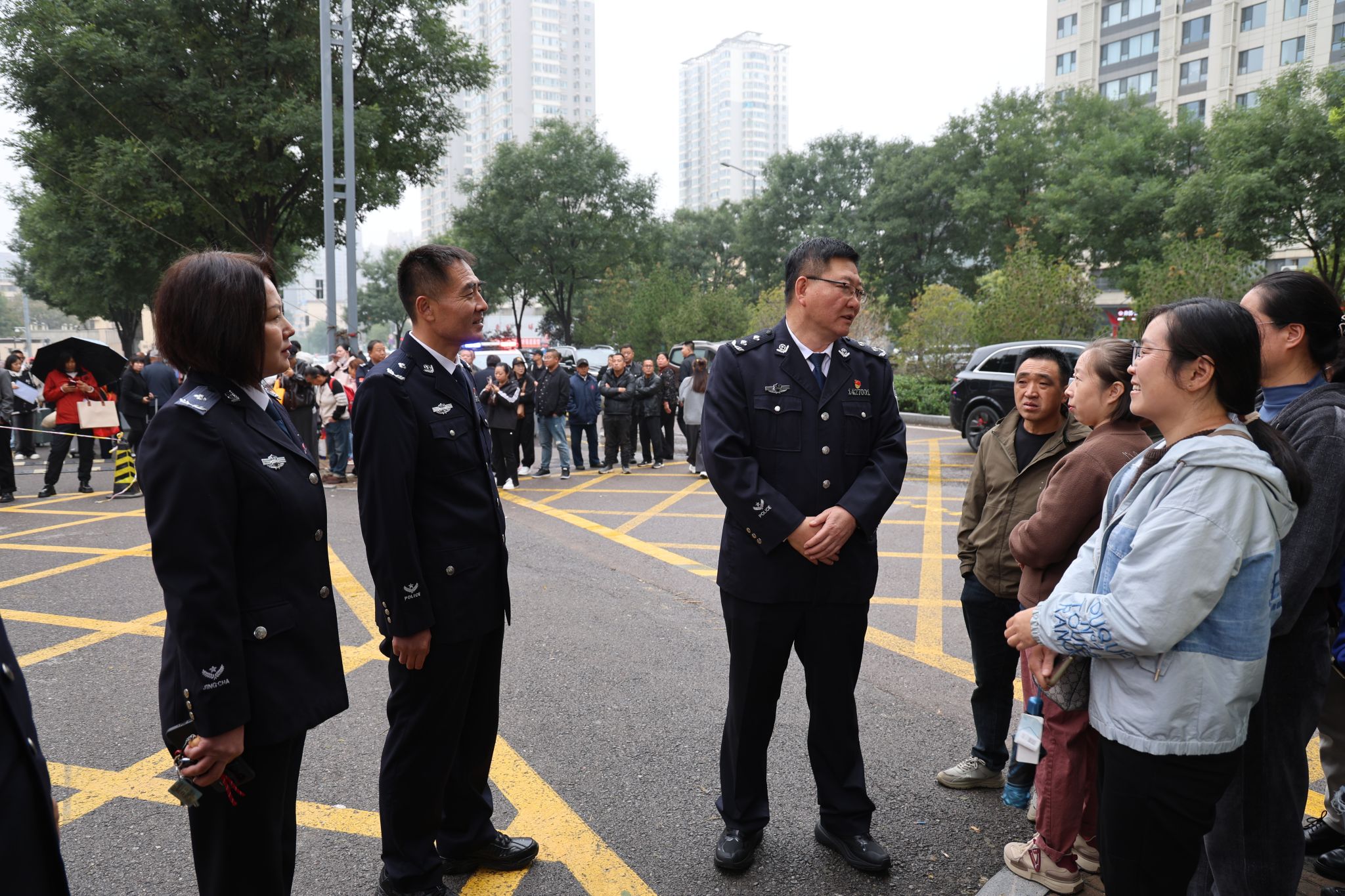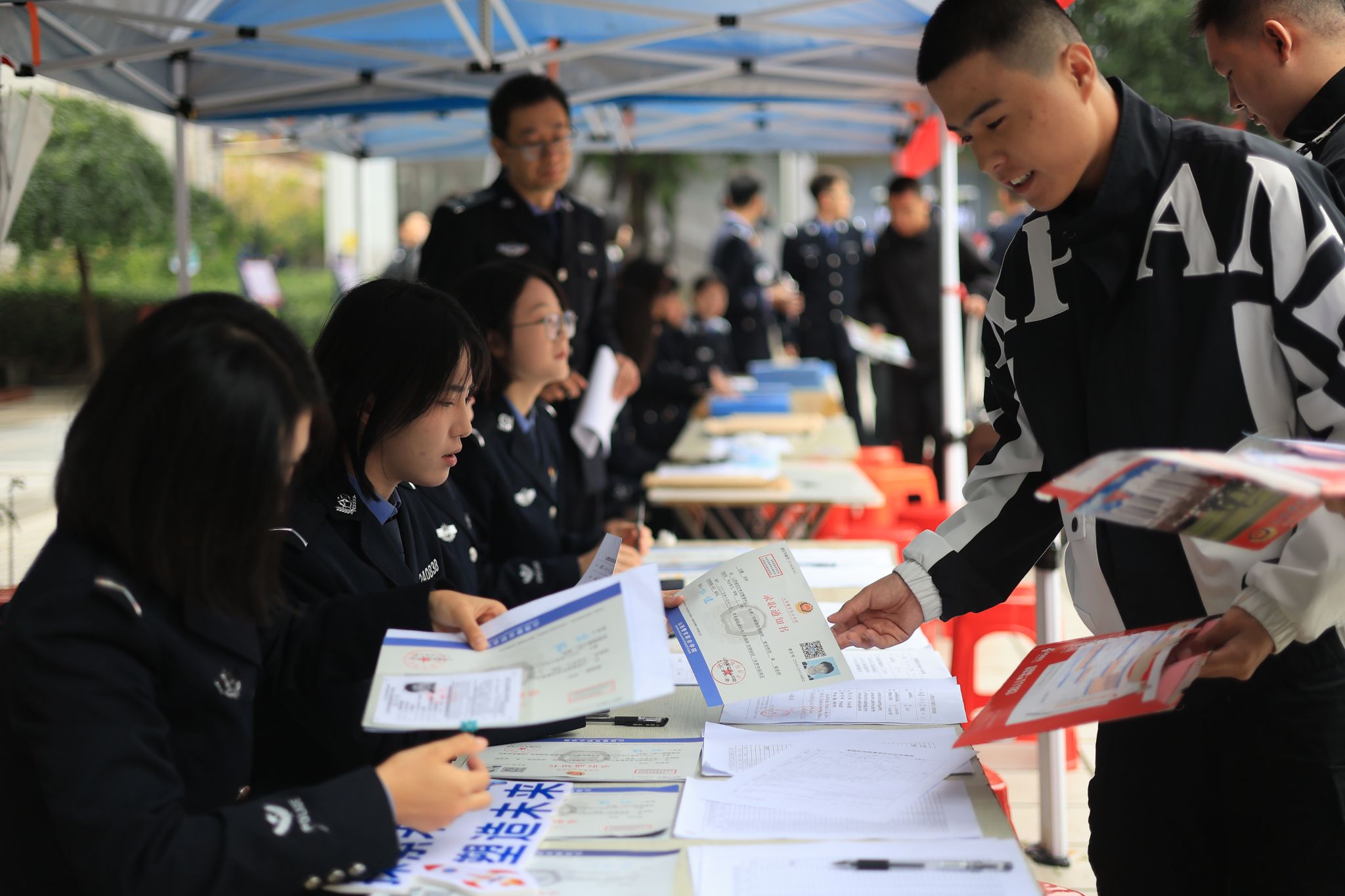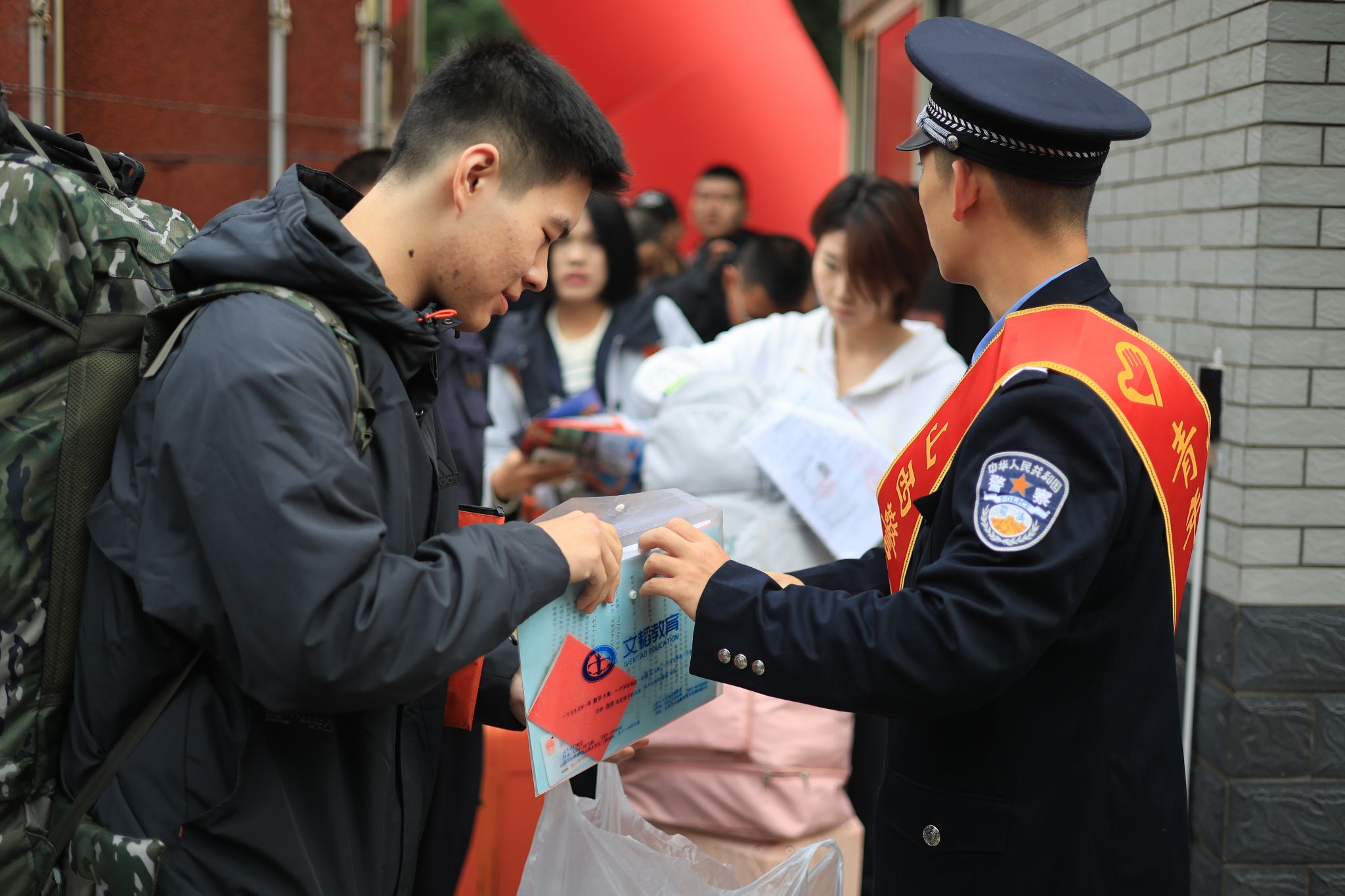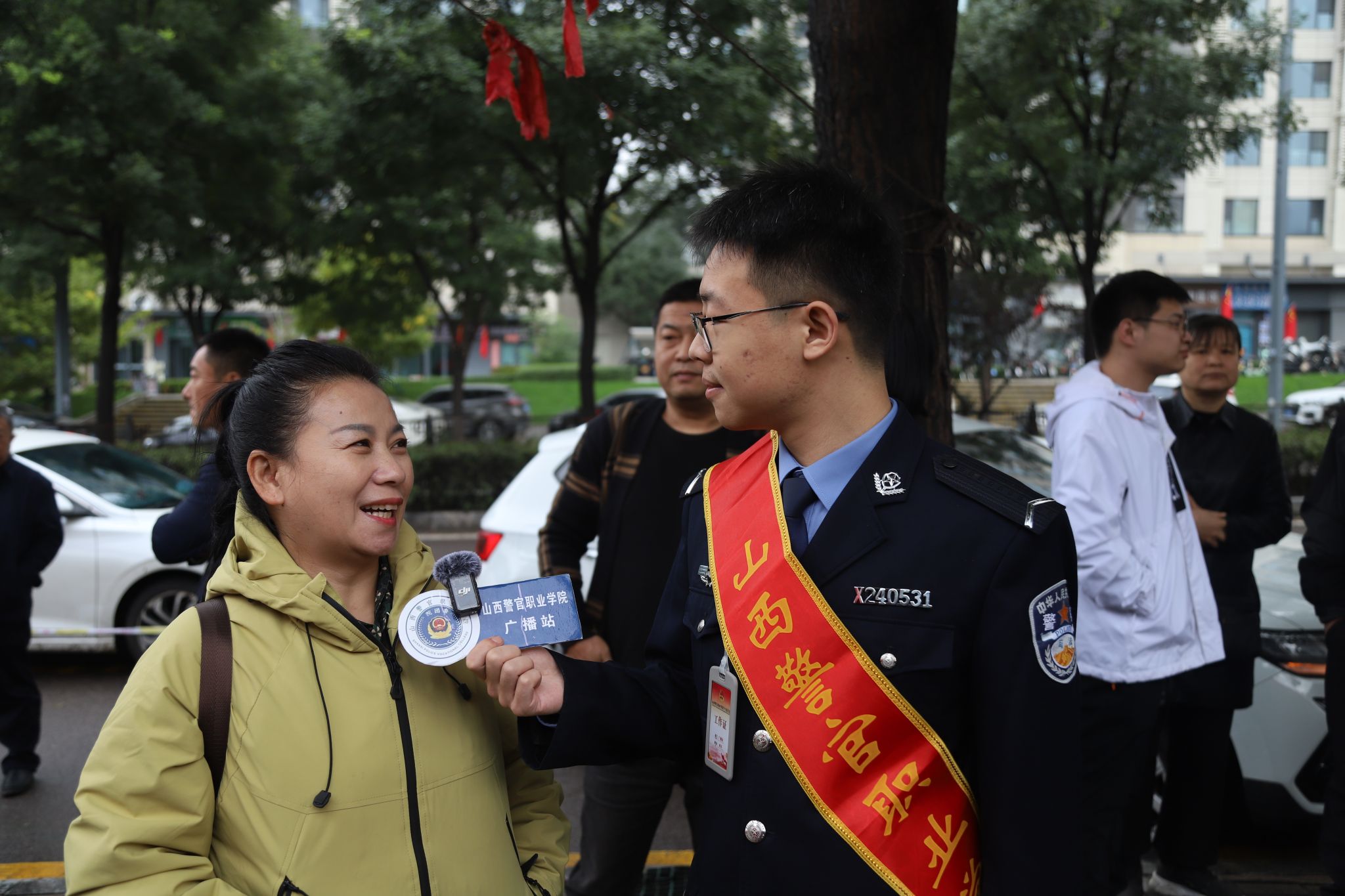 志愿者身着警服穿梭其间