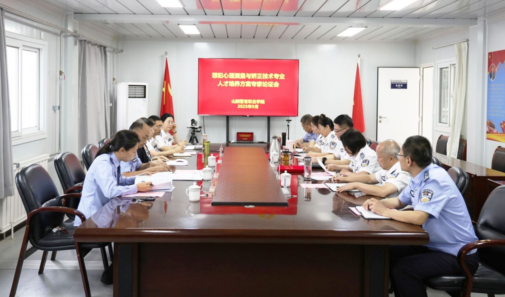 9月26日下午,学院召开罪犯心理测量与矫正技术专业设置及人才培养方案专家论证会。此次论证会邀请江苏司法警官职业学院院长王智军、浙江警官职业学院副院长严浩仁等省外专家线上评审,山西大学心理系教授、山西警察学院教授、监狱管理局教育改造处领导以及监狱矫治民警等省内专家线下评审。院党委书记孙健出席并讲话,院学术委员会成员参加。会议由院党委委员、副院长刘延梅主持。