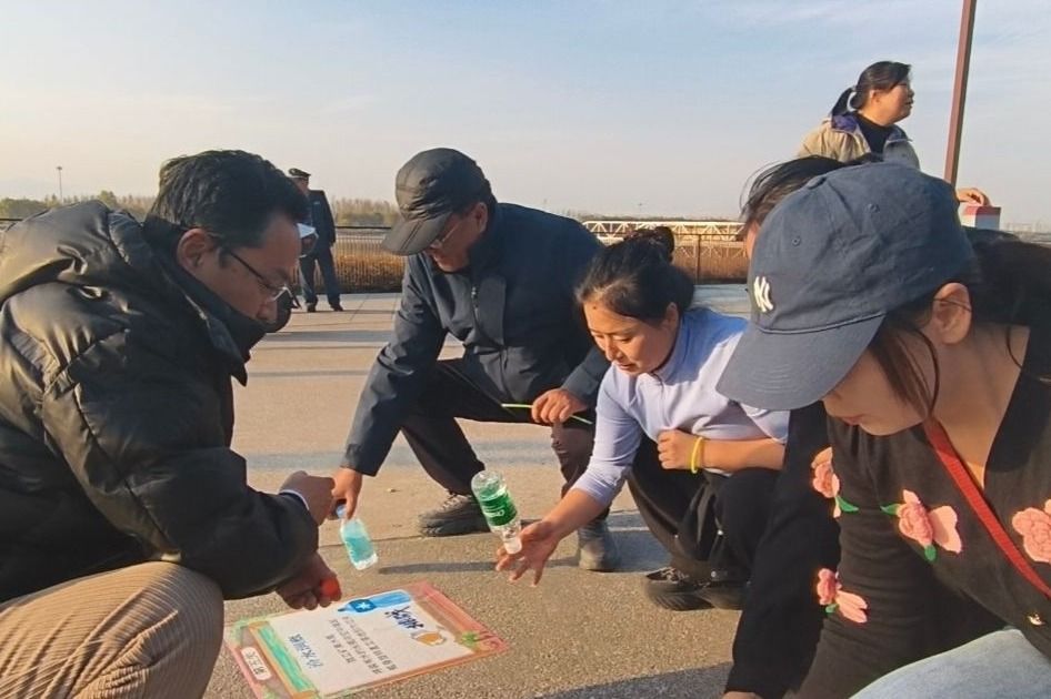随后,健步之旅正式开启,教职工们向北奔赴汾河晚渡景区。沿途秋景如画、层林尽染,大家精神饱满、结伴而行,途中“汾波毽舞”“汾畔智答”等趣味游戏关卡增添了不少欢乐,众人默契配合、踊跃参与,在运动中放松身心,在协作中增进情谊,尽显蓬勃向上的风貌。