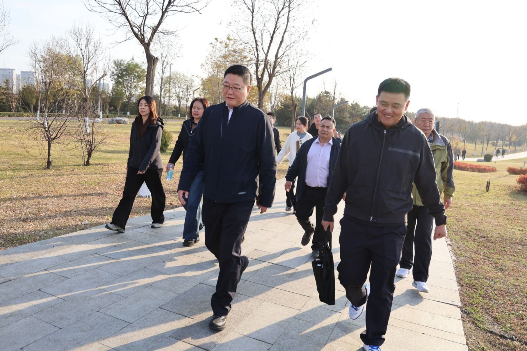 活动伊始,院党委书记孙健讲话。他指出,作为太原生态文明建设的亮眼成果,汾河公园见证着“绿水青山就是金山银山”的实践伟力,大家循着习近平总书记考察足迹健步前行,既是感受自然之美的休闲时光,更是汲取思想伟力的精神洗礼与党性教育。他号召大家在行走中感悟坚韧不拔、团结奋进的力量,并将其更好地融入到工作中,走好学院高质量发展的每一步。