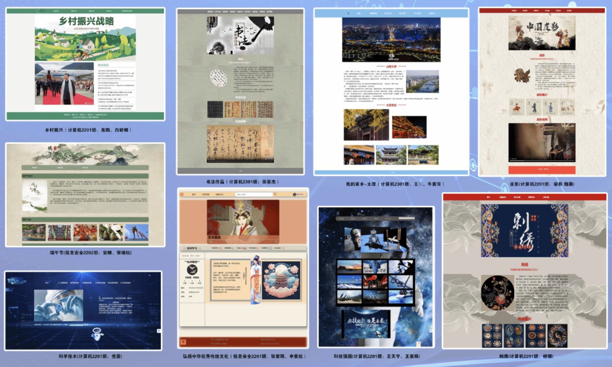 网页设计”为团体赛项,88名学生组建了49个参赛小组,以团队形式共同完成了精美的网页设计作品。他们通过巧妙的页面布局、视觉设计和用户体验,展现了出色的团队协作和创新能力。网页设计赛项共收到参赛作品49份,最终18份作品获奖。