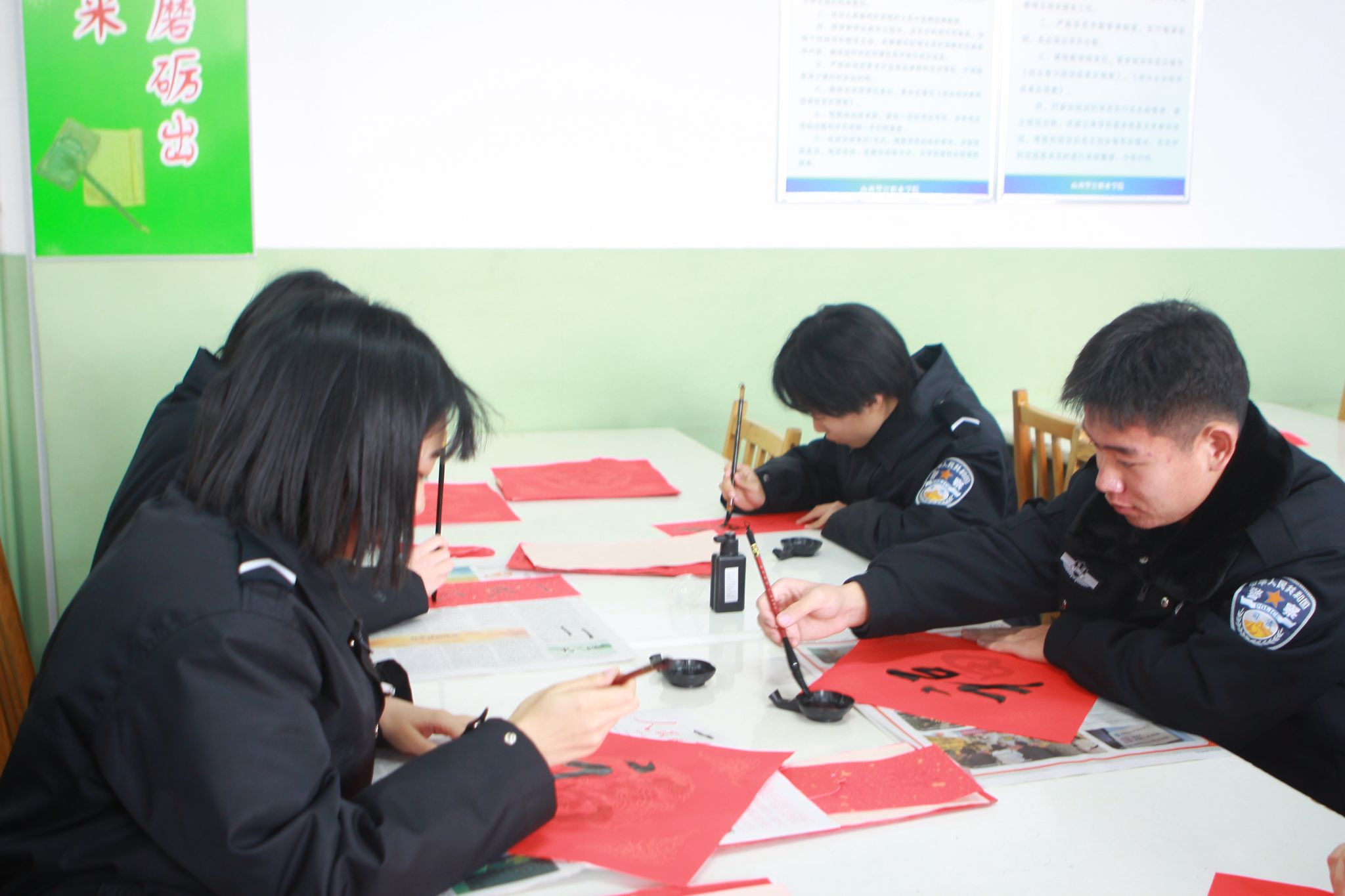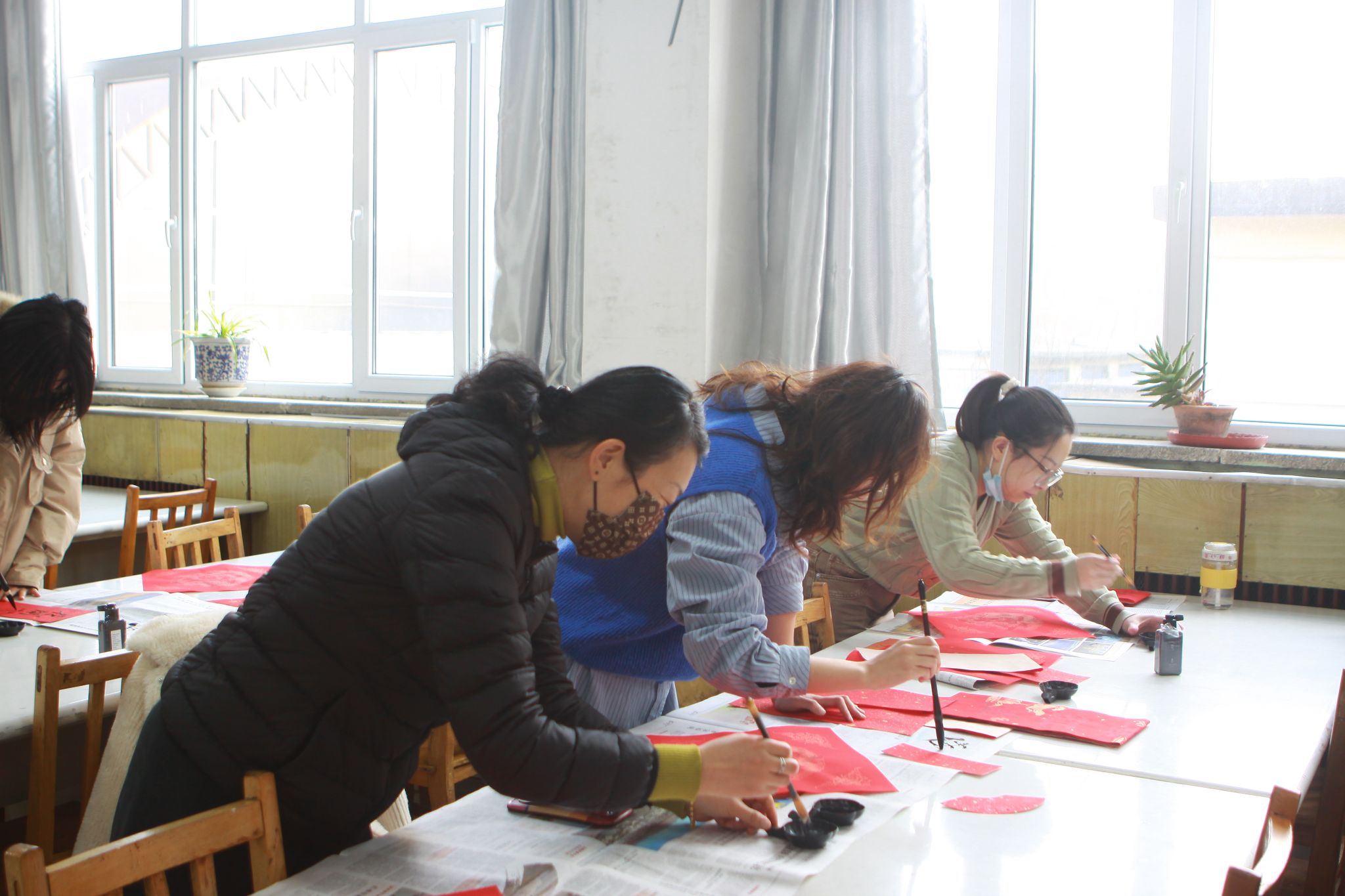 随后,在郭老师的指导下,大家认真书写春联和福卡,在一停一顿、一撇一捺中体验书法的乐趣,寄托对新年的美好期望。