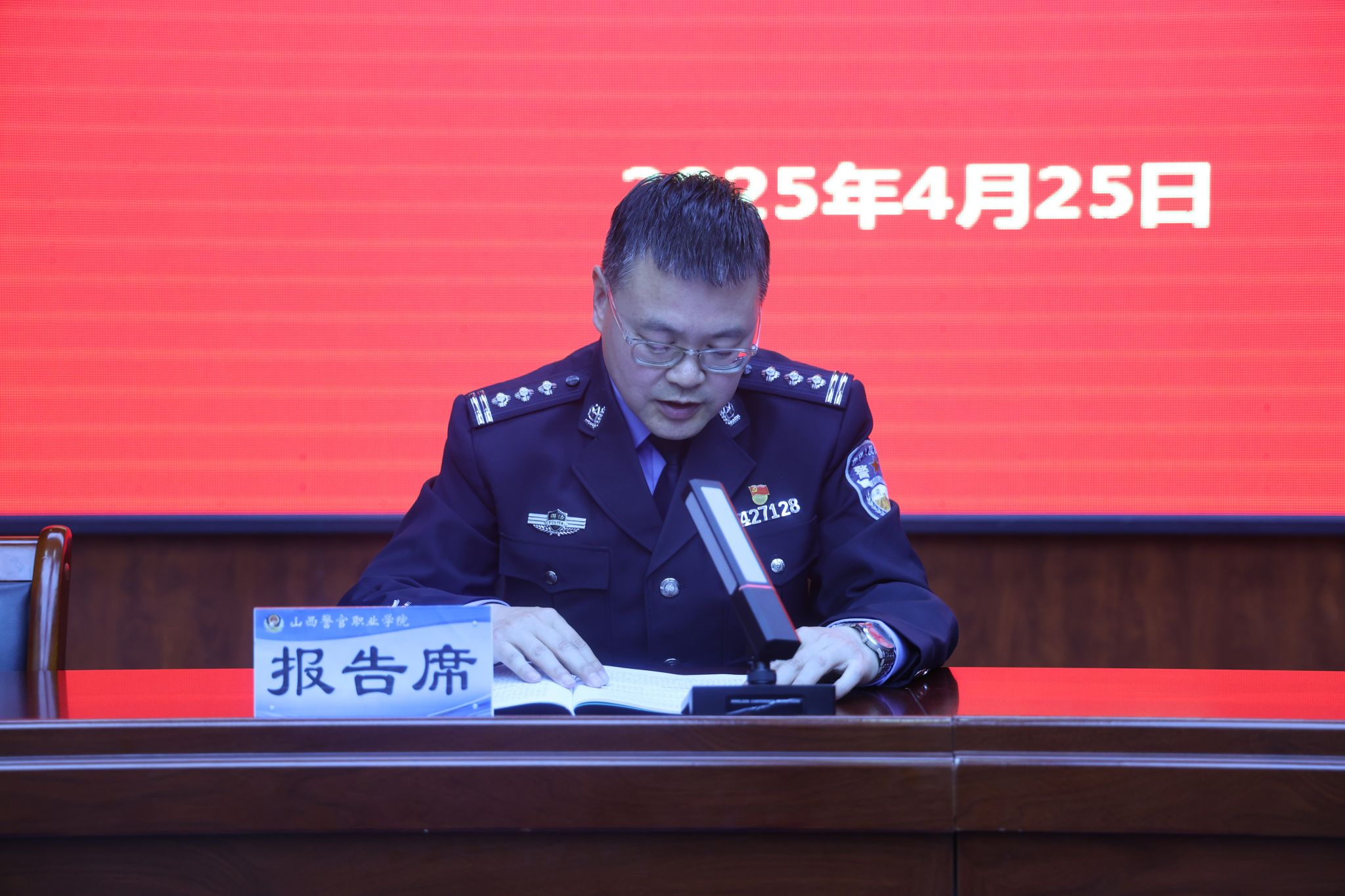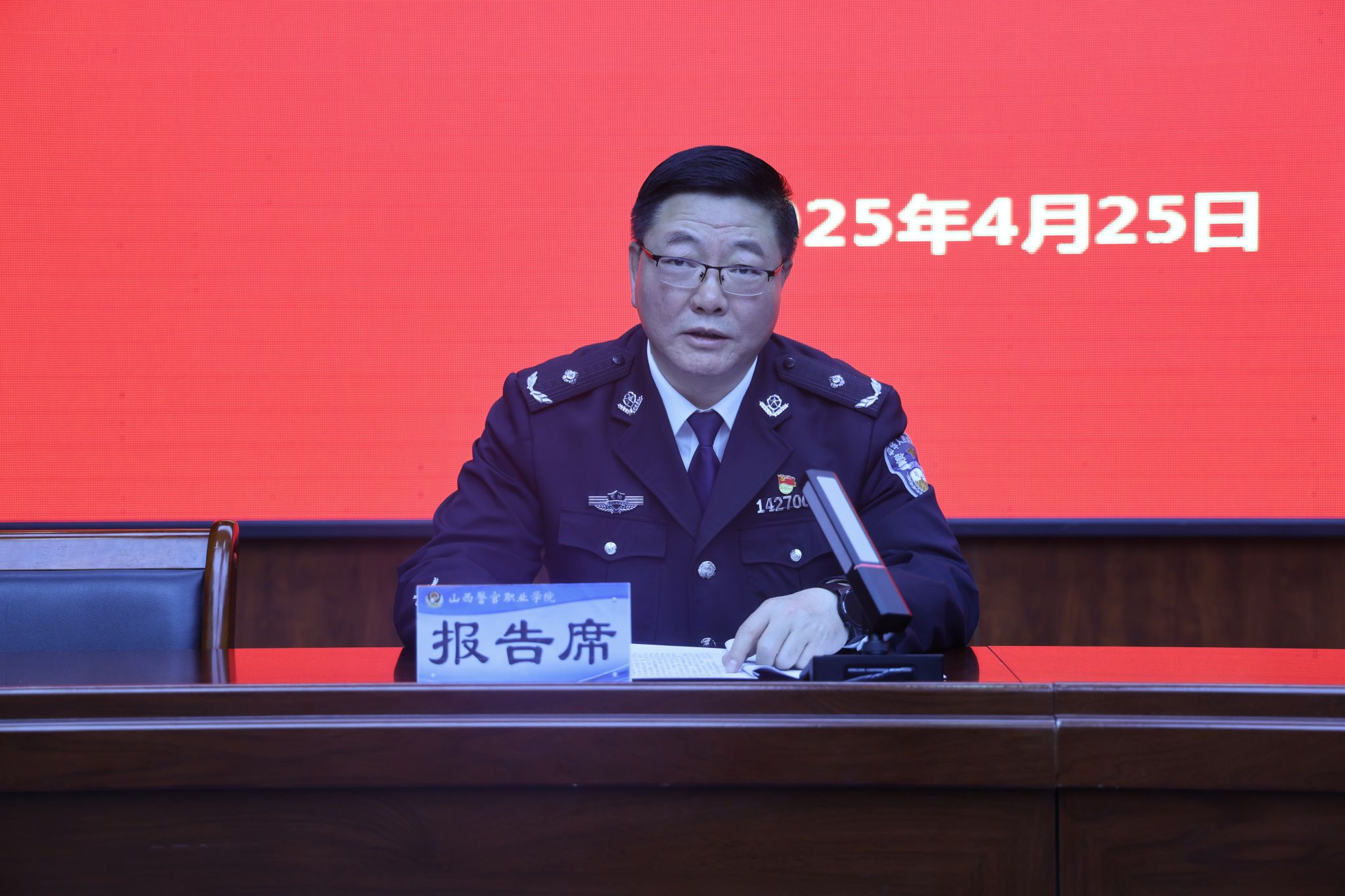 院党委书记孙健以“锚定目标抓落实 凝心聚力谋发展 努力建成特色鲜明人民满意的高水平警院”为题作学院工作报告。