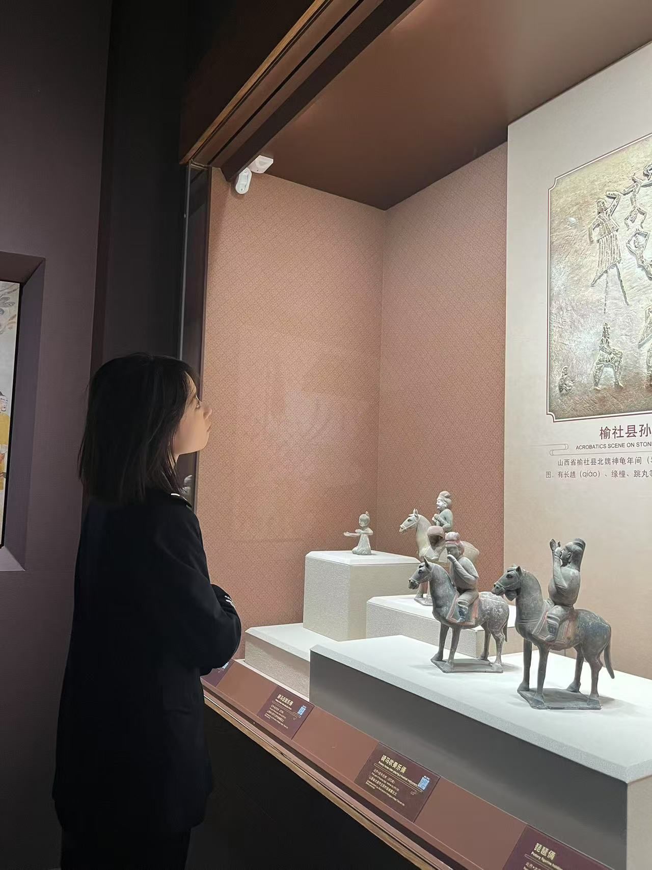 走进山西博物馆,“晋魂”基本陈列展如同一幅徐徐展开的历史长卷。同学们驻足于镇馆之宝“鸟尊”前,感受古代工匠的精湛技艺与审美意趣;凝视着色彩绚丽的壁画,仿佛穿越千年,触摸到民族交融的脉动;踏入“土木华章”展厅,仿佛踏入了一座浓缩的古建筑艺术殿堂,天透过考古基址模型、文物上的建筑图像,看到了古人在建筑领域不断探索、追求进步的精神……每一件文物都是历史的见证者,在无声诉说中,将文化自信的种子悄然播撒进学子心间。