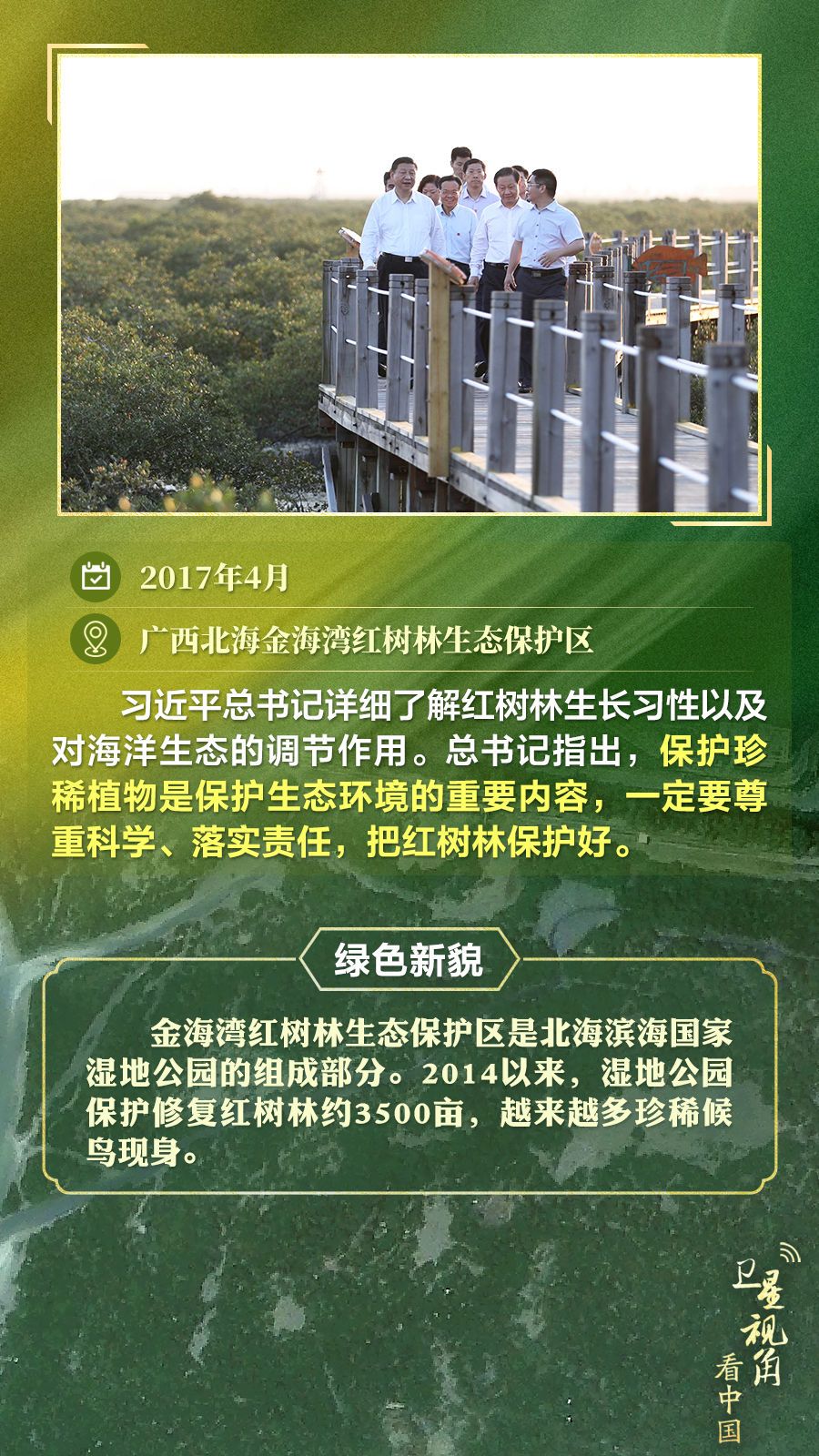 党的十八大以来,从阿尔山林区到塞罕坝,从八步沙林场到南海广袤的红树林……一棵棵树,一片片林,见证着习近平总书记对生态和谐的深深牵挂。