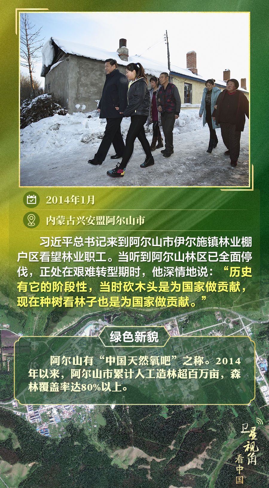 通过卫星视角,一起俯瞰总书记去过的这些林区,重温总书记对造林护林的殷殷嘱托,感受绿色新貌。