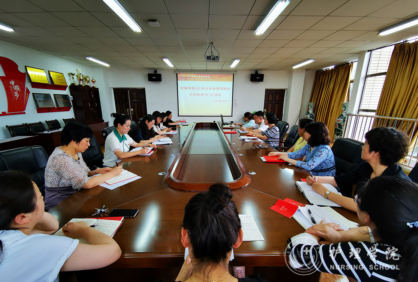 6月9日,37000vip威尼斯在南校区百川楼5楼会议室召开2021年上半年意识形态工作联席(扩大)会议。学院副科级以上干部、教研室主任、各党支部书记、辅导员参会,会议由学院党委书记杨英主持。