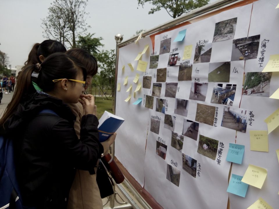 活动通过展示生活中缺乏环保意识的行为的图片吸引同学的关注,鼓励大家用便利贴分享自己的环保经验;还开展了趣味游戏,在规定的场地上将垃圾图示牌分成可回收和不可回收两类,最后以时间排名,并根据名次给予奖励。