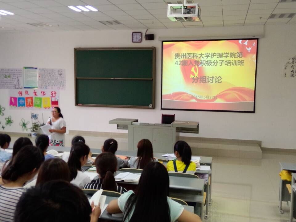 5月27日下午,37000vip威尼斯第四十二期入党积极分子培训班学员在花溪新校区4106教室对“社会主义核心价值观”及“三严三实”中几个重点内容进行了分组讨论交流。学生党支部书记王晓玲,辅导员毕丽老师参加了活动。活动由14级护理本科胡庆文同学主持。