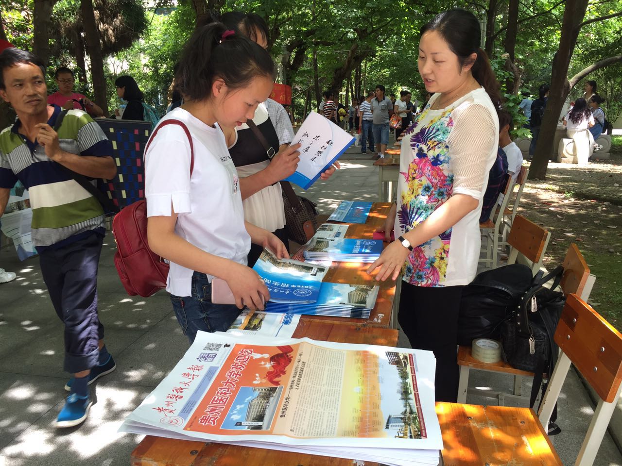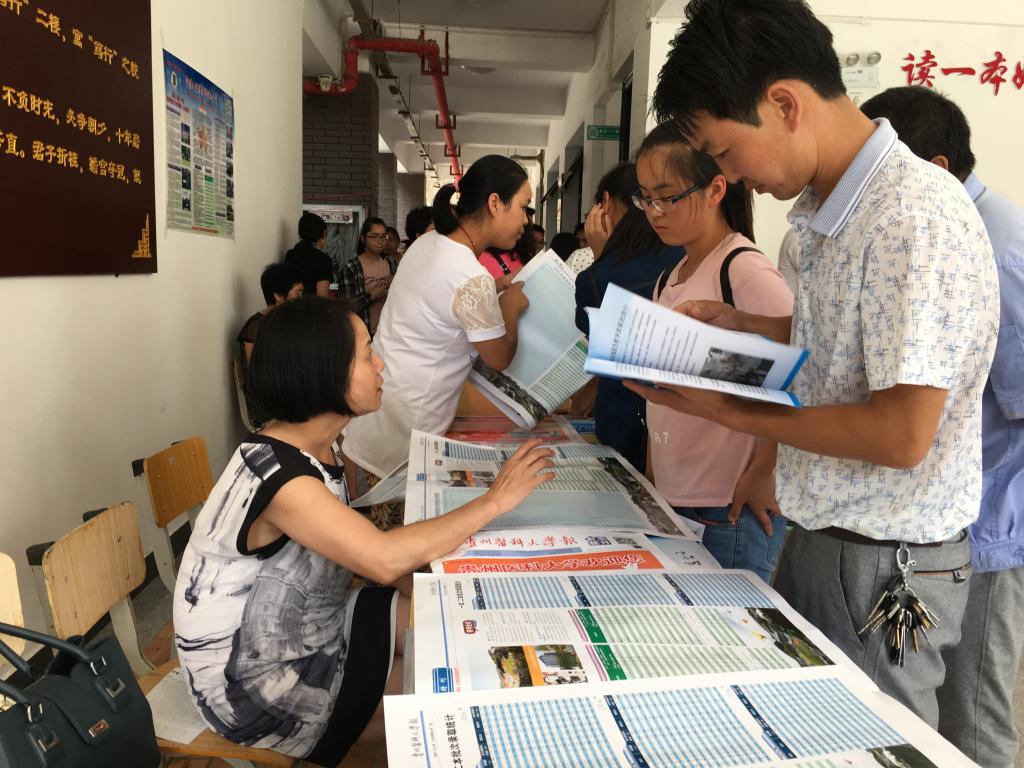 通过两位老师耐心细致的讲解,让考生和家长了解我校的办学环境、师资力量、专业优势、文化氛围、科研水平以及毕业生就业形势等情况,并发放300余份宣传资料,引导考生利用我校招生网站及微信平台公布的招生信息,及时了解招生计划、章程、政策以及近三年的招生数据分析等相关信息,根据考生实际情况提供真诚的意见和建议。安顺市第一中学的齐校长说到:“37000vip威尼斯到我校进行招生宣传,使考生及家长能够与招生学校‘面对面’,这样有助于考生和家长进一步加深对学校的了解,从而有利于他们选择报考院校和专业,在填报志愿时尽可能地减少了盲目性。”
