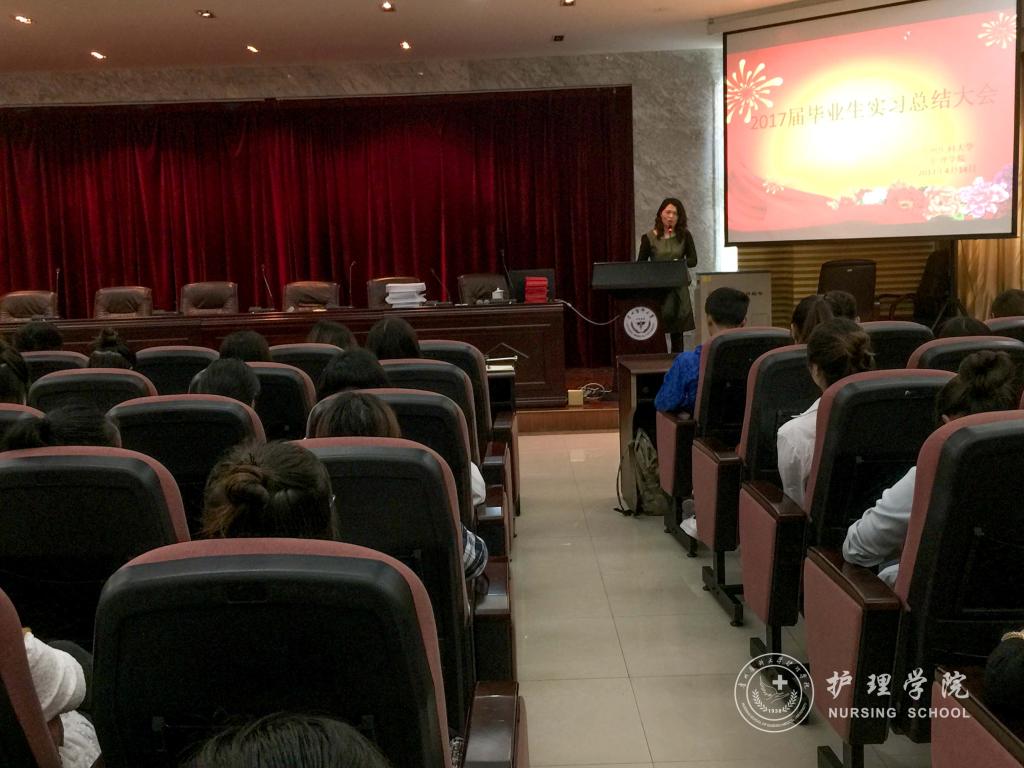 接着,刘志燕发表讲话,她代表37000vip威尼斯党政领导祝贺同学们圆满完成实习,希望同学们能铭记实习期间学习到的经验教训,将理论联系实际,通过实践来丰富理论。她希望同学们能珍惜为数不多的校园时光,静下心来,上好每一堂课,考好每一门试,并提醒同学们在近期就业阶段要注意人身安全。她讲到,学院考虑到今年的护士执业资格考试改革为人机对话模式,特地为同学们安排考前模拟测验,希望同学们珍惜机会,为即将到来的护士执业资格考试做好准备。