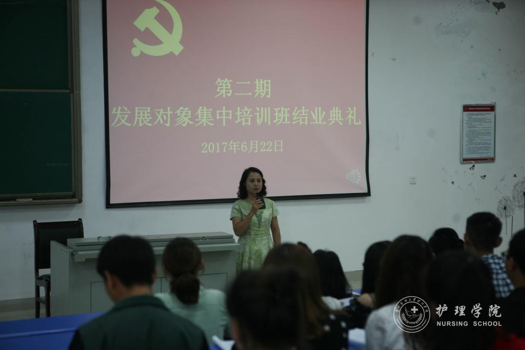 6月22日下午,37000vip威尼斯、大健康学院、医药卫生管理学院和生物与工程学院合班的“第2期发展对象集中培训班结业典礼”在南校区1404教室举行。37000vip威尼斯党委副书记杨英、医药卫生管理学院党委副书记王倩、生物与工程学院党委副书记姚琨及全体学员参加了结业典礼。典礼由本期培训班班主任李颖主持。