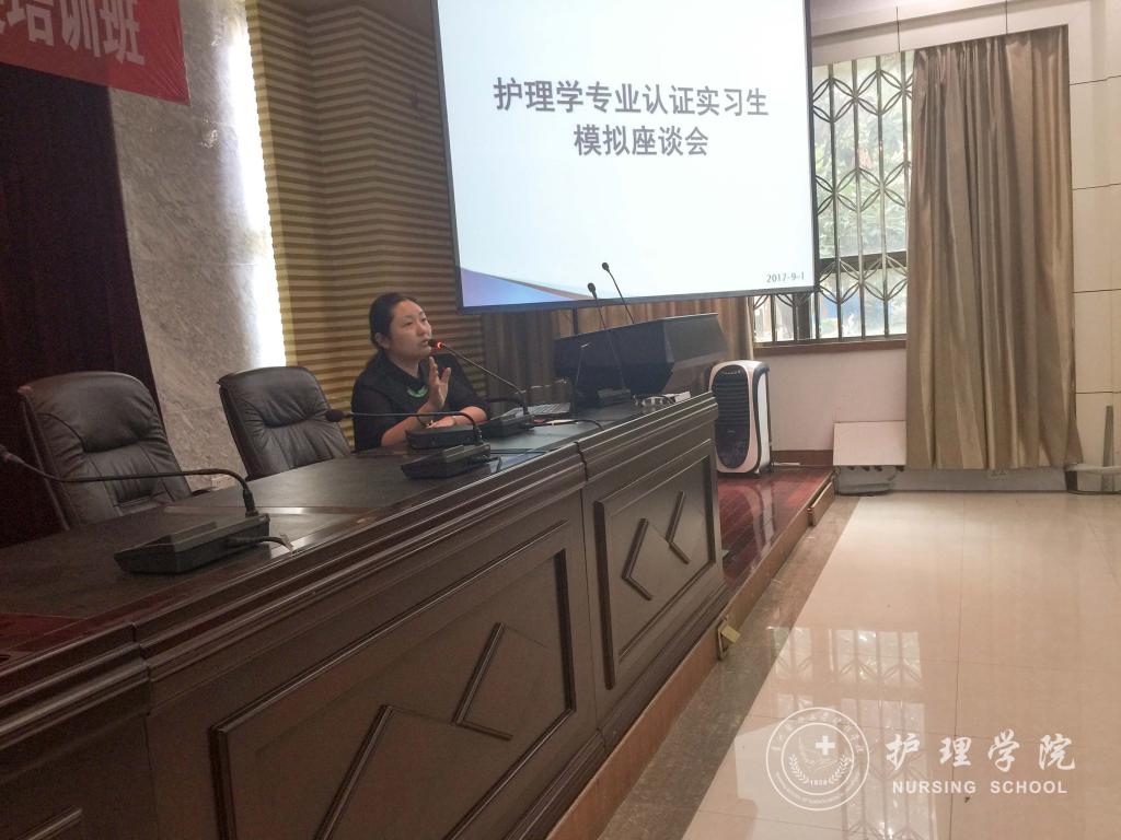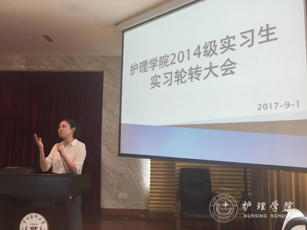 为保证护理学专业认证工作的顺利进行。9月1日,37000vip威尼斯在北校区道德讲堂召开了实习生大会暨专业认证实习生模拟座谈会。37000vip威尼斯副院长刘志燕、学生科科长曾敏、生产实习科科长柳忠燕、2014级辅导员李颖及全体贵阳地区实习生参加了本次会议。会议由李颖主持。