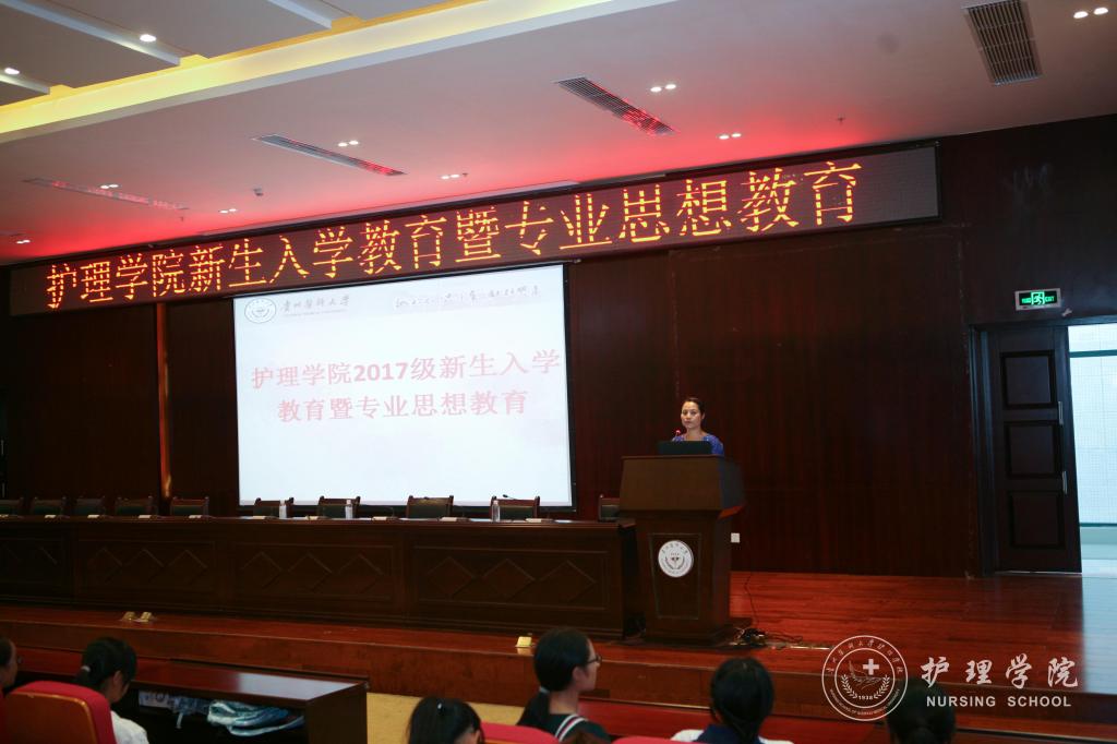 副院长刘志燕为2017级新生作了以专业思想教育为主题的讲座。刘志燕从护理学的内涵,护理学的专业培养目标、能力要求、知识要求等方面对新生进行专业思想教育,使新生对护理学专业有了基本的了解,对大学四年的专业学习有了初步的规划。