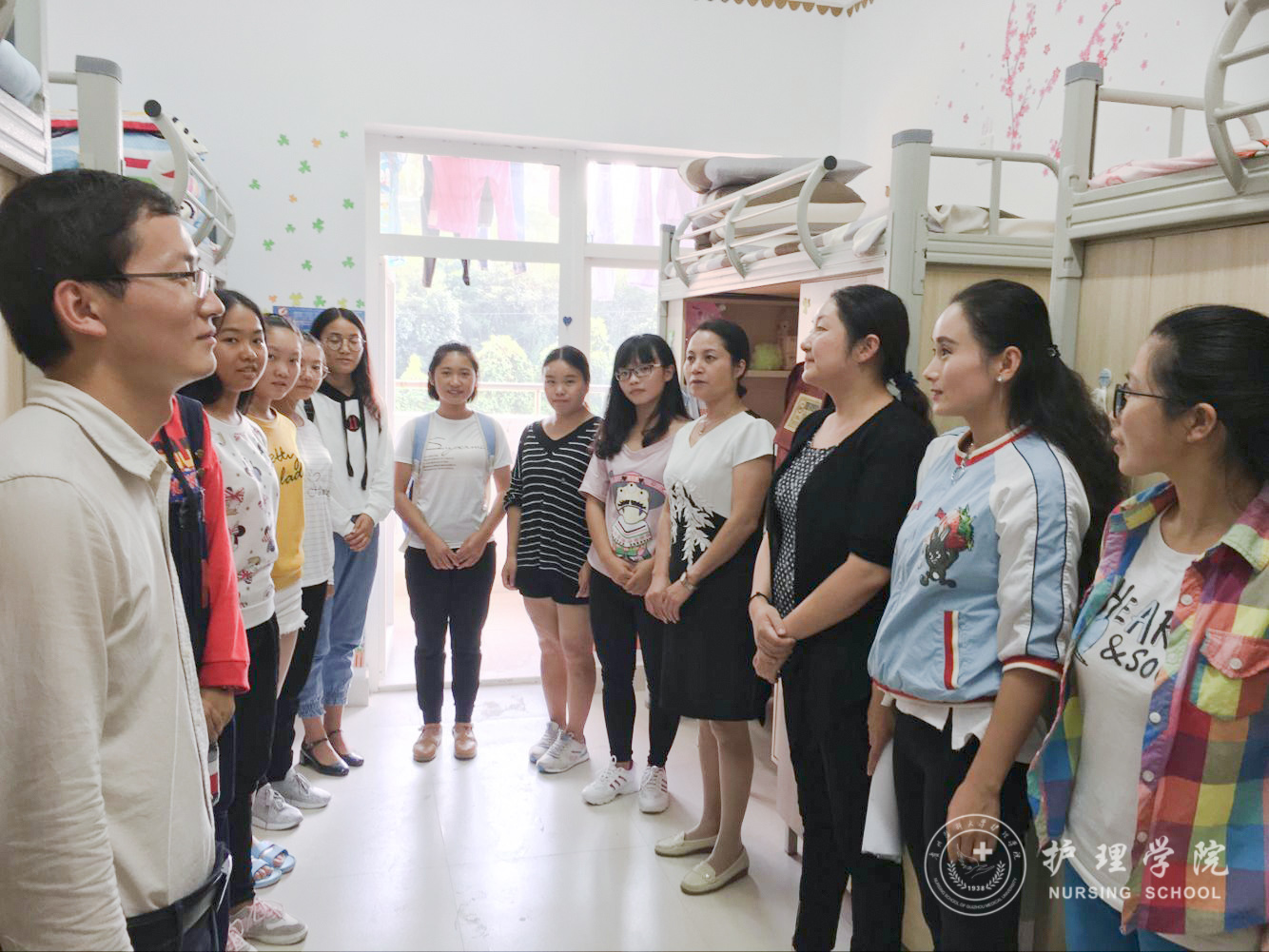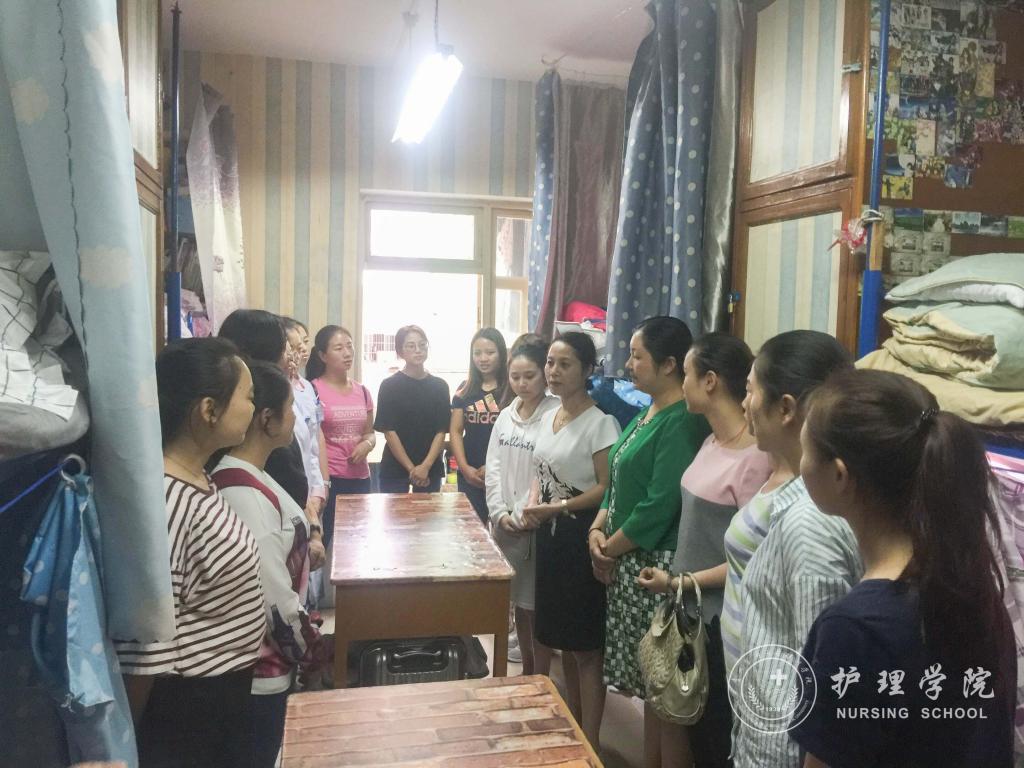 为迎接党的十九大召开、为学校护理学本科专业认证工作营造良好的安全氛围。同时也为了贯彻学校2017年下半年安全稳定工作会议精神,2017年9月12日下午和13日下午,37000vip威尼斯党委副书记杨英、学生科科长曾敏、全体辅导员及学生会干部深入学生宿舍看望学生,了解新学期同学们的学习、生活和思想状况,并对宿舍安全、宿舍卫生、宿舍文化等工作进行检查指导。