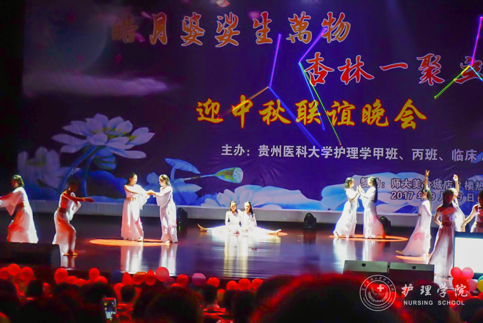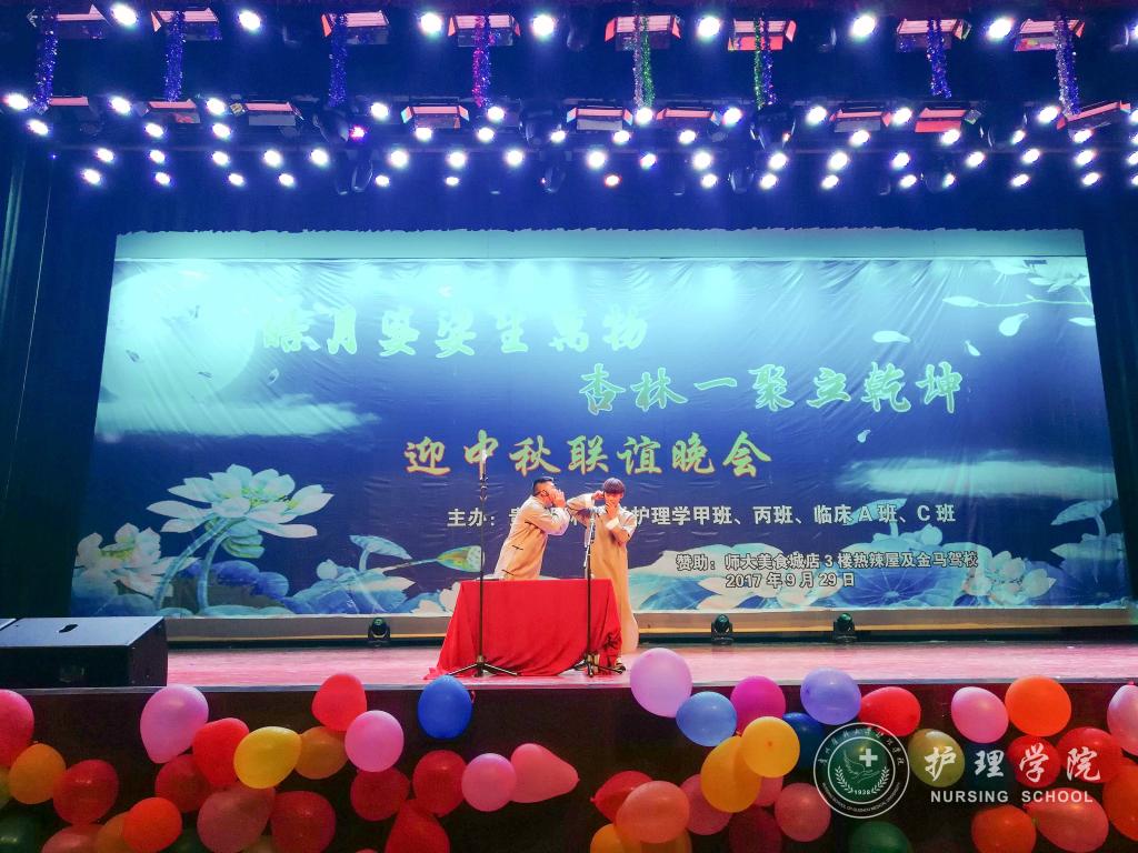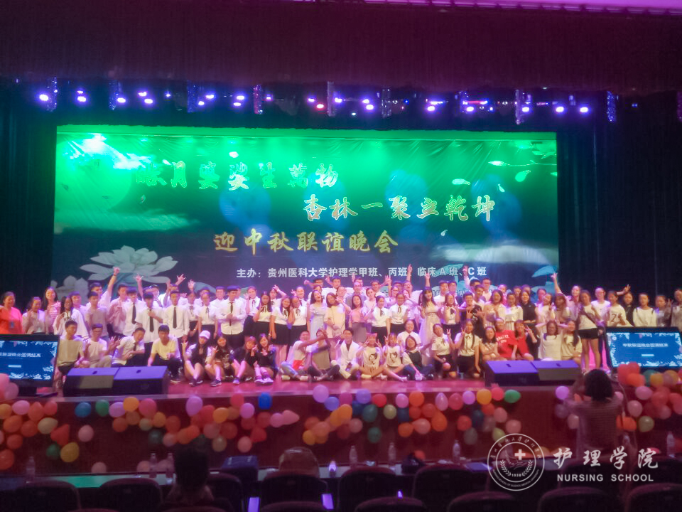 为了增强同学间的友谊,提高集体意识。9月29日晚上,37000vip威尼斯2017级甲班、丙班在花溪校区礼堂与2017级临床A班、C班共同举行了“皓月婆娑生万物,杏林一聚立乾坤”迎中秋联谊晚会。本次晚会邀请了外国语学院何晓涛老师、心理健康中心彭彪老师、基础医学院辅导员苗建峰老师、37000vip威尼斯辅导员王晓玲、毕丽、李颖和马景瑶老师以及老生代表参加。晚会由2017级护理甲班杨一城、崔玉琪、临床A班唐永豪、封雪晴四位同学主持。