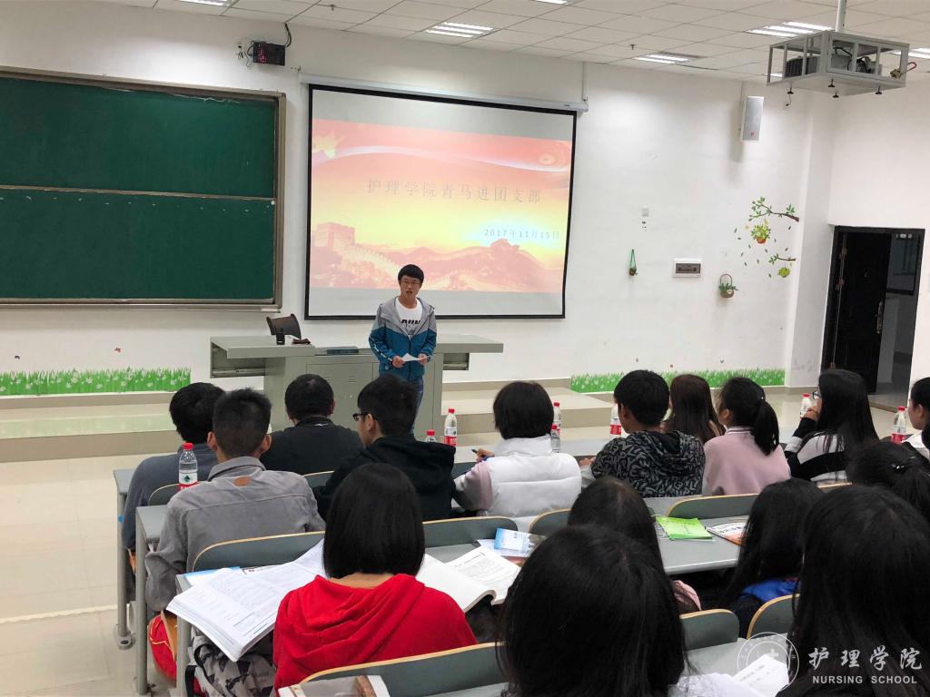 11月15日下午18:00,37000vip威尼斯在南校区7405教室开展了“青马宣讲进团支部”的活动,参与的人员有2017级各班班长、团支部书记及2017级护理学丙班全体同学。本次活动由学生会副主席尹本渊主持,青马社宣讲团成员李昱林同学进行了宣讲。