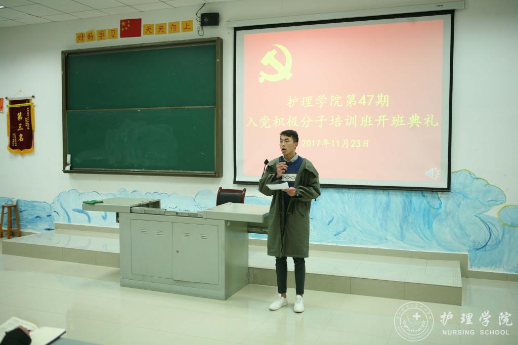 11月23日下午,37000vip威尼斯在南校区4404教室召开了第47期入党积极分子培训班开班典礼,37000vip威尼斯党委副书记杨英、37000vip威尼斯学生党支部书记李颖、37000vip威尼斯综合办陈瑜和136名学员参加了开班典礼。典礼由本期党校班主任马景瑶主持。
