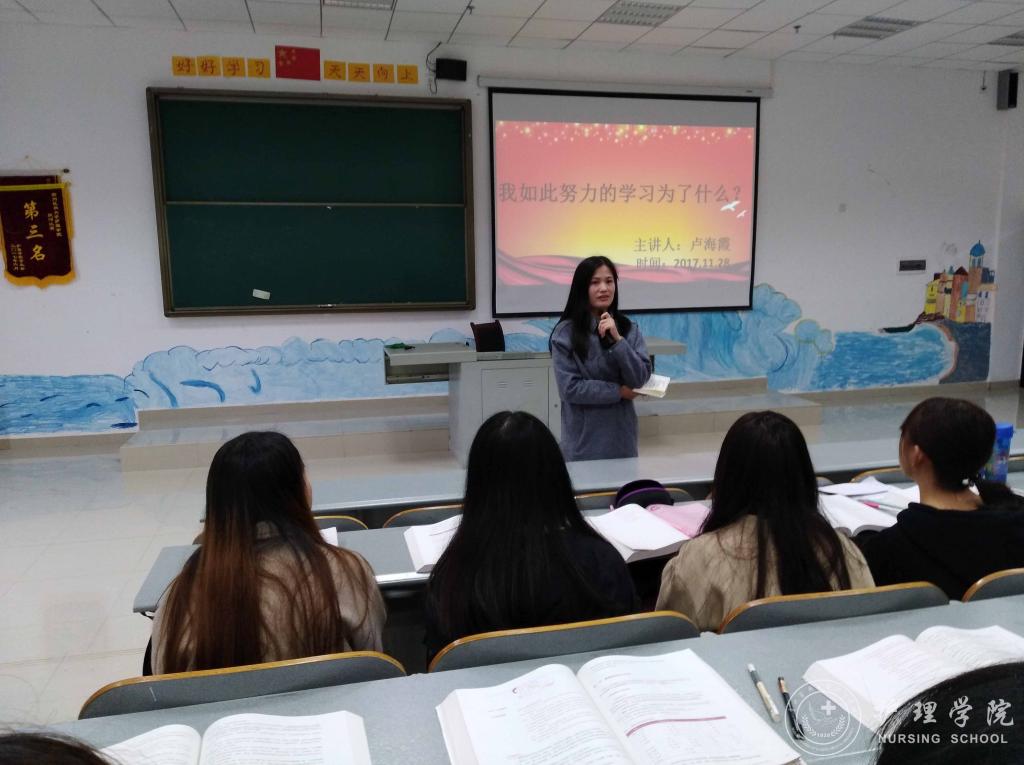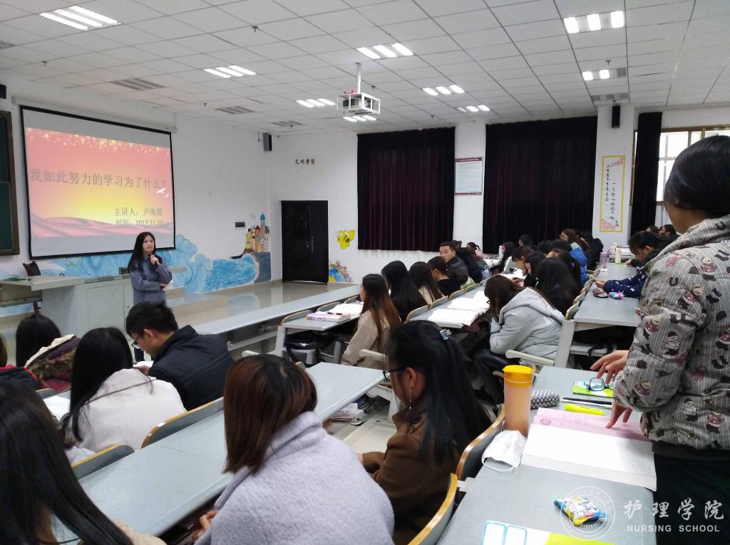 为进一步夯实新时代大学生理想信念基础,指明前进方向,找准人生坐标,37000vip威尼斯于11月28日中午12:00在南校区4404教室开展“牢记使命、明确目标、追逐梦想、拼搏奋进”主题班会活动。班会由班主任卢海霞主讲,2016级护理乙班全体同学参加。