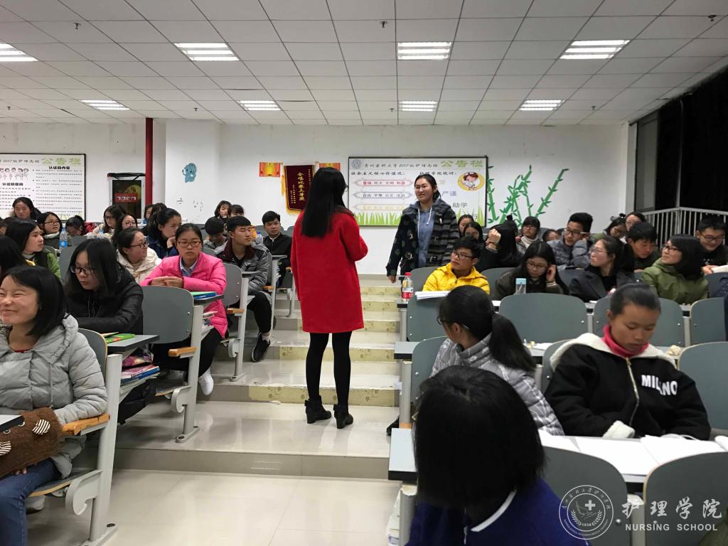 为进一步提高学生对护理学专业的认识,37000vip威尼斯于11月20日晚7点在南校区7402教室开展“不忘初心 砥砺前行”主题班会活动,班会由班长张小飞同学主持,班主任李宇老师主讲,2017级护理丙班全体同学参加。
