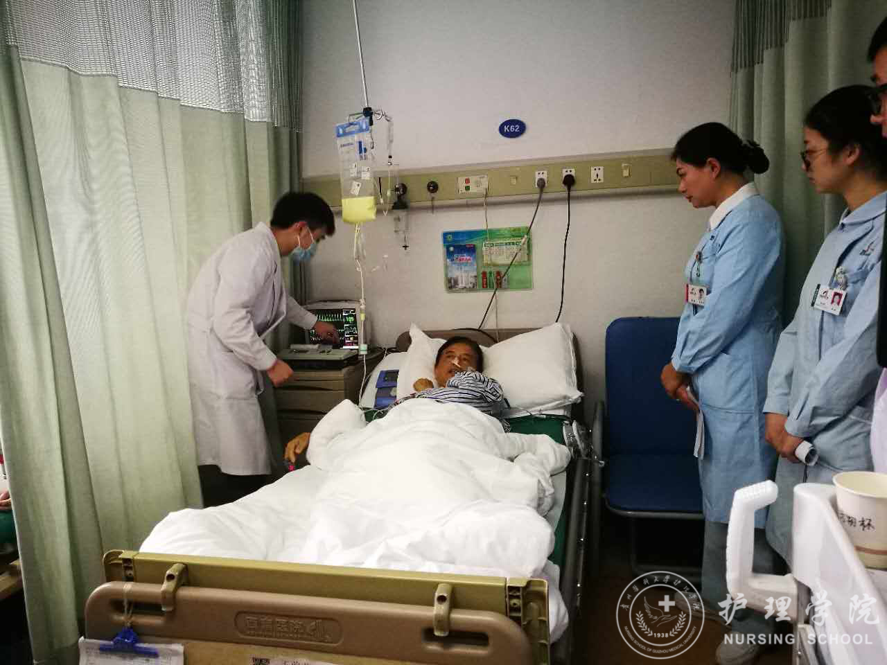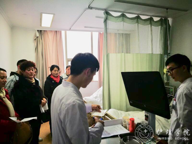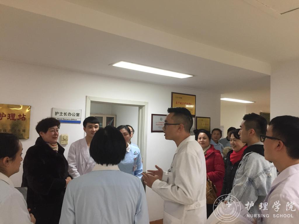 首先,贾秀英一行与护理部主任王丽华、助理庄雪平、临床带教老师代表、全体实习学生进行座谈交流,了解院方对我校学生实习教学情况的安排,分别听取带教老师对学生实习情况的介绍,实习学生对带教老师带教情况的反馈。带教老师提出了学生需加强英语学习,科研训练的建议。随后,一行人观摩了肝胆外科病区组织的护理教学查房教学活动,查看了教学档案资料。会后到学生宿舍看望实习学生,了解其住宿、生活环境。