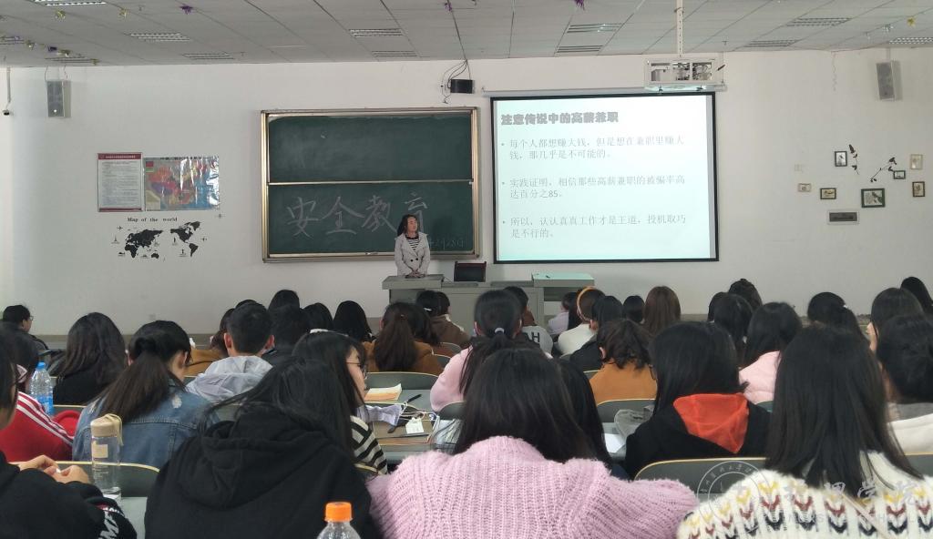 班会上,首先由安全委员围绕大学生校园安全问题讲解,主要内容涉及人身安全、财产安全、兼职安全等方面,使同学们对常见安全问题重视。其次,班主任针对大学生校内外存在的安全隐患进行补充,引导学生增强防范意识,掌握基本安全防范技能。最后辅导员老师鼓励同学们在做好自身安全防范工作的同时,还要以积极向上的心态迎接新学期的学习任务。