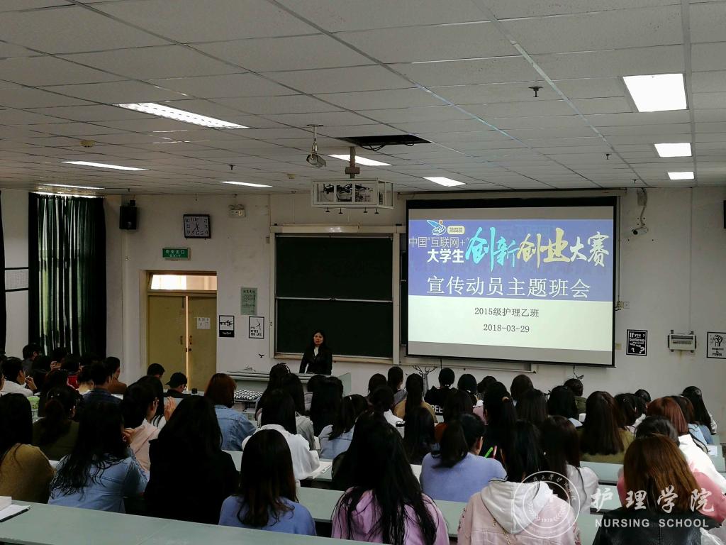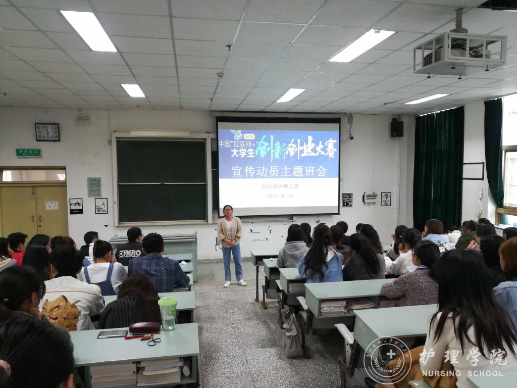 为提高同学们的创新创业意识,培养同学们创新创业的素质和能力,37000vip威尼斯于3月29日下午5:30在北校区3302教室举行了第四届“互联网+”大学生创新创业大赛宣传动员主题班会。班会由班主任李红老师主讲,2015级护理乙班全体同学参会。