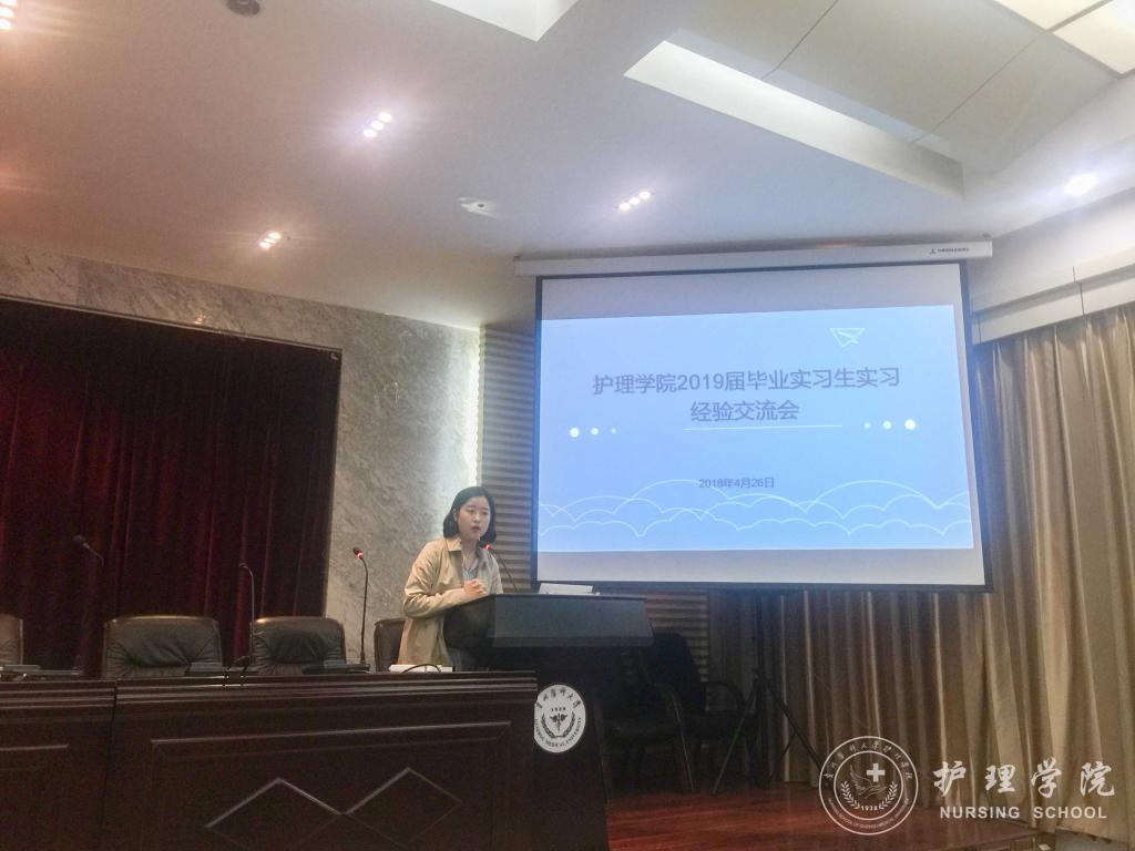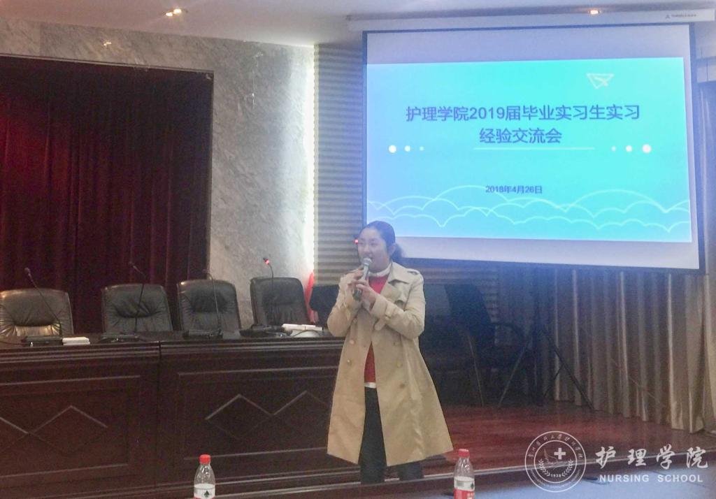 4月26日下午,37000vip威尼斯在北校区道德讲堂举行了2019届毕业实习生实习经验交流会。学生科科长曾敏、辅导员李杏春、2014级优秀实习生代表和全体2015级同学参加了本次交流会。会议由2015级辅导员李颖主持。
