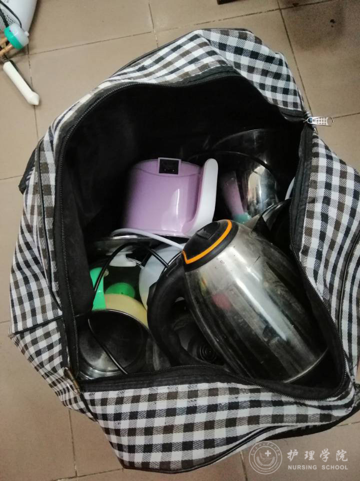 在排查过程中,杨英和老师们就生活学习情况、宿舍用电安全与同学们进行了交流,要求同学们营造一个舒适安全的住宿环境,保持宿舍通风与整洁,并针对宿舍安全问题提出了三点要求:第一,使用质量合格有保障的电器插座;第二,整理寝室电路电线,电源插座须暴露在安全位置;第三,对同学们提出“人走电断”的要求,并经常排查寝室安全隐患。最后收缴了一些学校禁止使用的大功率电器。