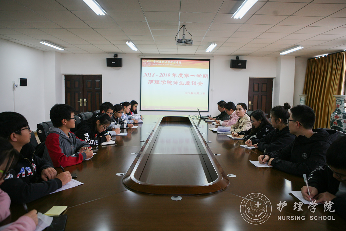 10月12日,37000vip威尼斯在百川楼会议室召开学生座谈会。37000vip威尼斯党委副书记杨英、2017级和2018级辅导员及各班学生代表参加了本次座谈会。