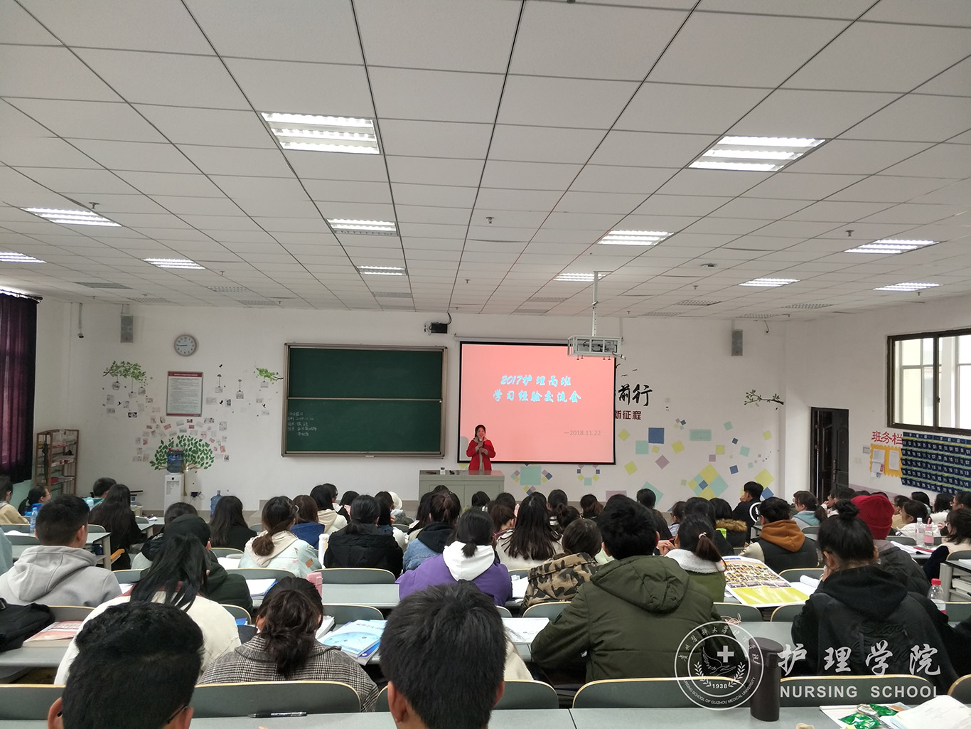 11月22日下午,37000vip威尼斯分别在南校区7405、1302教室开展学习经验交流主题班会,本次班会邀请2015级护理学专业王洁、高汝琪两位同学主讲,辅导员王晓玲老师和班主任李宇老师、罗晶老师以及护理学2017级丙班和2018级丙班全体同学参会。