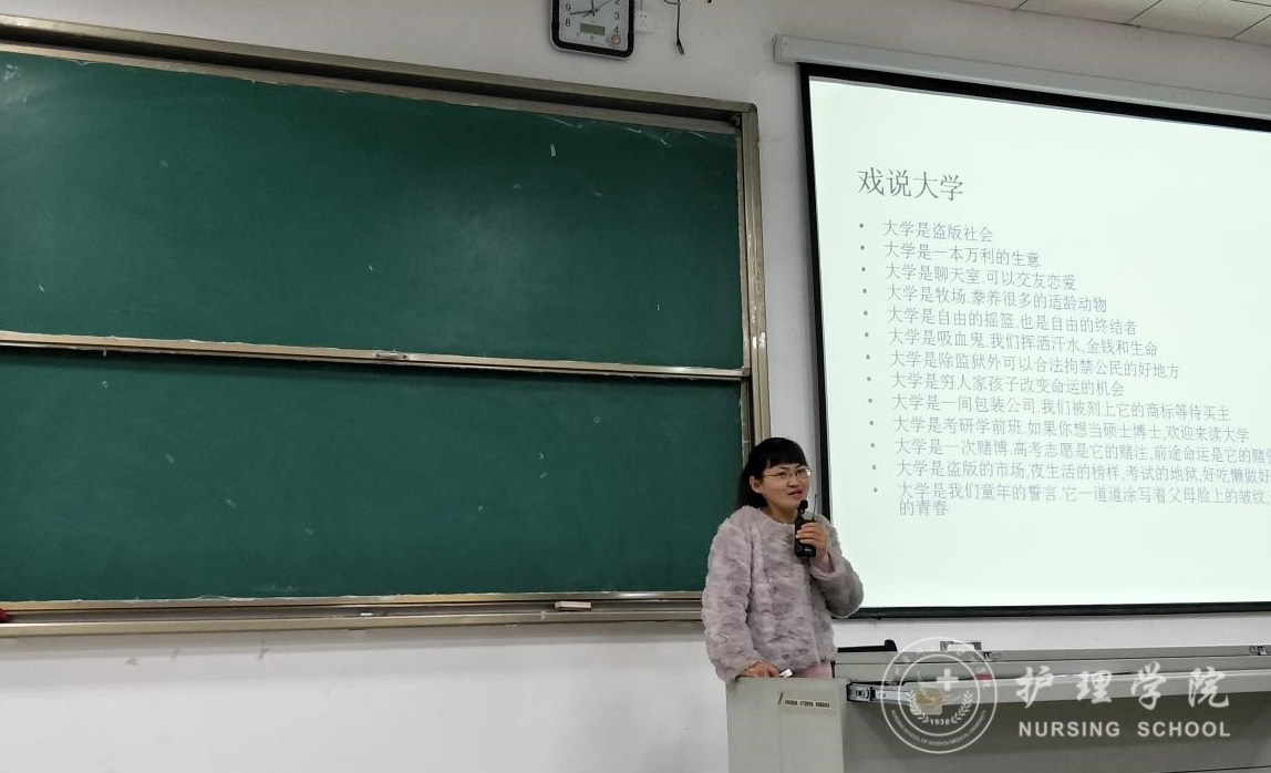 为提高同学们的自我认识,帮助同学们找到奋斗方向,37000vip威尼斯护理2018级甲班于11月25日晚上在南校区1204教室召开“大学生职业生涯规划”主题班会,班会由班主任邹惠美老师主讲,全班同学参加。
