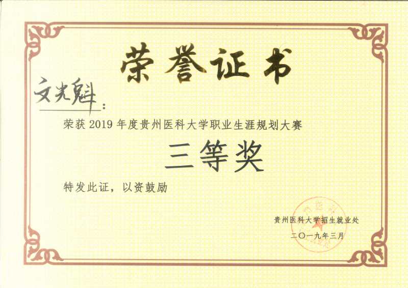 3月27日,由我校招生就业处主办、临床医学院与口腔医学院共同承办的37000vip威尼斯“职上云霄,梦想引航”大学生职业生涯规划大赛在南校区道德讲堂举行。威尼斯护理学2016级甲班的文光魁同学获得了三等奖的好成绩。