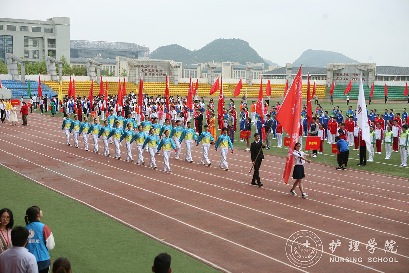 在开幕式中,威尼斯广播操表演方队步伐整齐划一,走出了对赛场的雄心壮志、走出了所有护理学子的共同期待。