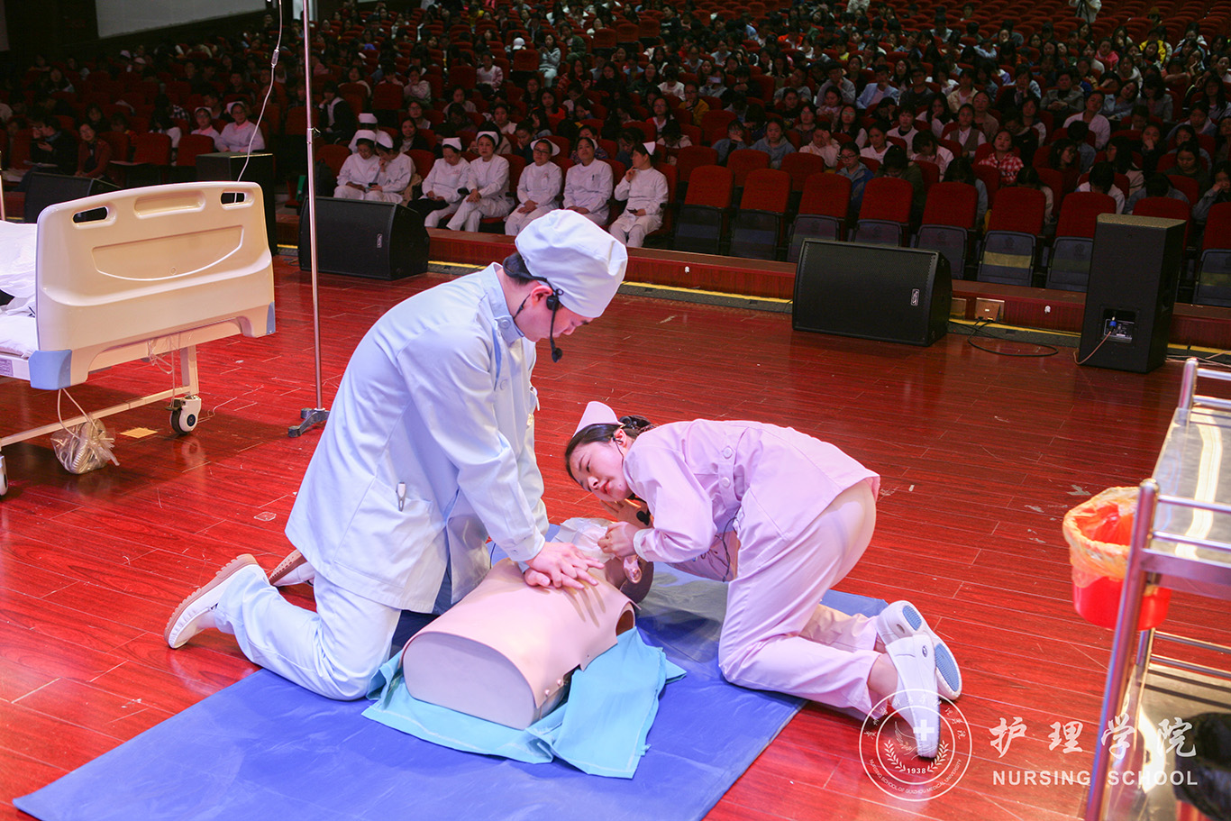 为庆祝“5.12”国际护士节,传承南丁格尔精神,进一步考察同学们的护理基本操作技能水平、推进护理专业教学改革,提高护理教育质量,37000vip威尼斯于5月8日下午在南校区礼堂举行“纪念5.12国际护士节护理技能比赛”。37000vip威尼斯院长贾秀英、院党委书记杨英、院党委副书记王秀红、副院长刘志燕出席了活动。37000vip威尼斯全体教师及、参赛选手及学生观众参加了活动。