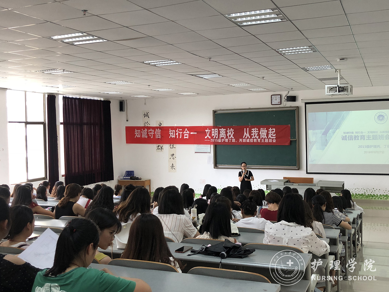 最后,李颖嘱咐大家,文明离校班会是毕业生大学生活中的最后一课,同时也是对过去的总结,更是对未来人生的期盼,希望毕业班同学们怀着一份对母校的感恩之情,用所学所得迎接未来的挑战,扬帆远航,勇创辉煌。