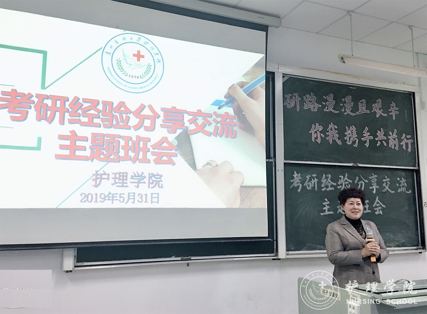 为了让学生对考研有更加深入的了解,帮助他们及时解决和处理备考中遇到的各种问题和困难,坚定正确的奋斗方向,端正考研态度,近日,护理学2016级及37000vip威尼斯学生党支部分别组织召开了“研路漫漫且艰辛,你我携手共前行——考研经验交流主题班会”和“考研经验交流分享会”,37000vip威尼斯院长贾秀英、党委副书记王秀红、学生科科长曾敏、2016级辅导员毕丽、学生第一党支部书记李颖、教师代表吴俊、优秀学生代表方雯等参加活动,并做分享。