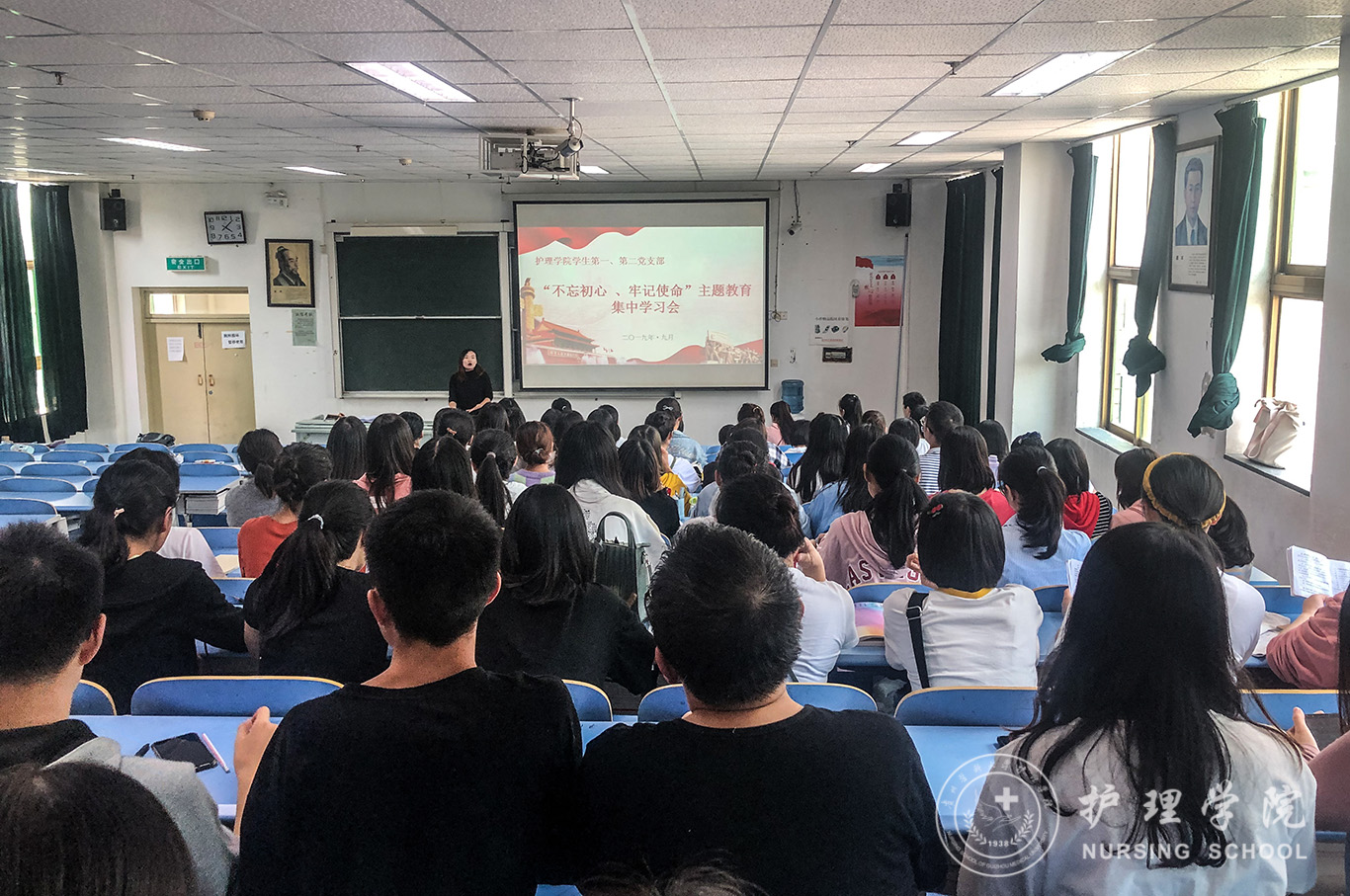9月27日,37000vip威尼斯学生第一、第二党支部在北校区3402教室召开“不忘初心、牢记使命”主题教育集中学习会。会议由学生第一党支部书记李颖主讲,学生第一、第二党支部的全体在校党员参加了学习。
